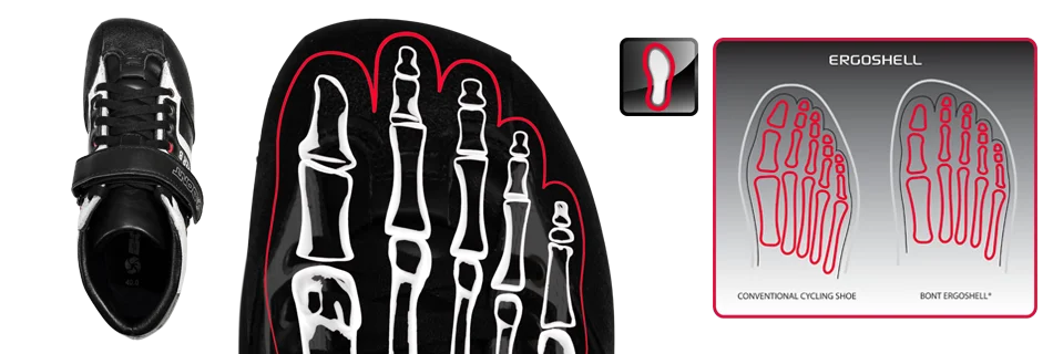 Обычные quad коньки предлагают форму типа «платье обуви». Хотя очень эстетично это приведет к чрезмерному сдавливанию пальцев ног, а также к чрезмерному сдавливанию пальцев ног, сдавливанию нервов между плюсневыми движениями, что часто приводит к появлению общих «горячих ног». Анатомическая форма коньков Bont позволяет ноге функционировать в наиболее эффективном и анатомически правильном положении.