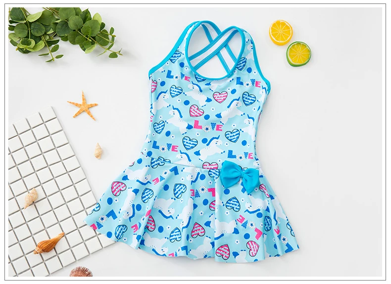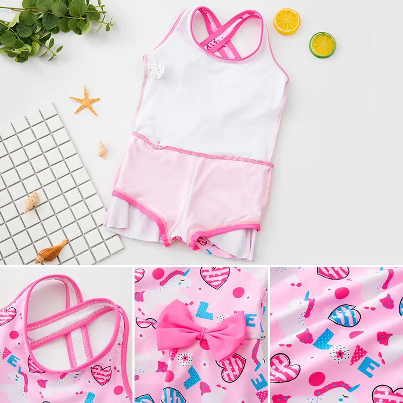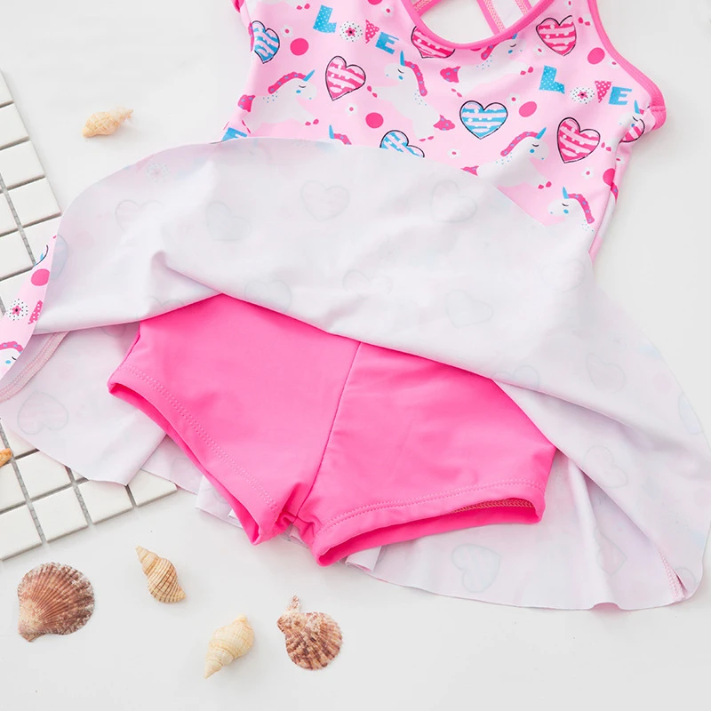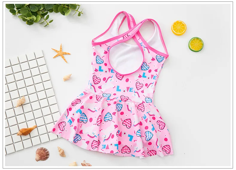 Милый купальник для девочек с розовым принтом, Цельный купальник для детей, платье принцессы с юбкой, бикини, детский летний купальный костюм для дайвинга