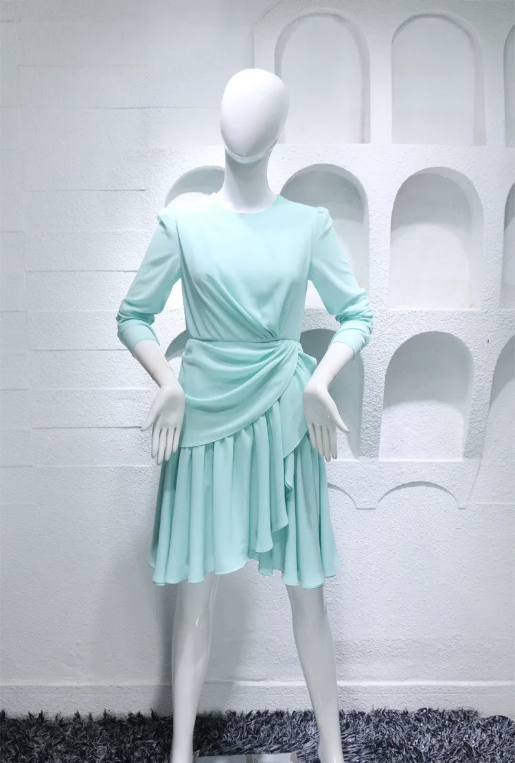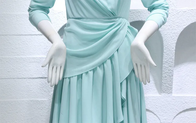 Женское шифоновое платье трапециевидной формы с длинным рукавом и оборками, весна 2019