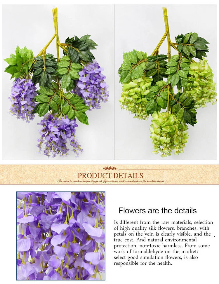 12 шт./лот, свадебные украшения, искусственные шелковые Висячие лозы с цветами из ротанга, гирлянда с цветами невесты для дома, сада, отеля CB4005/o