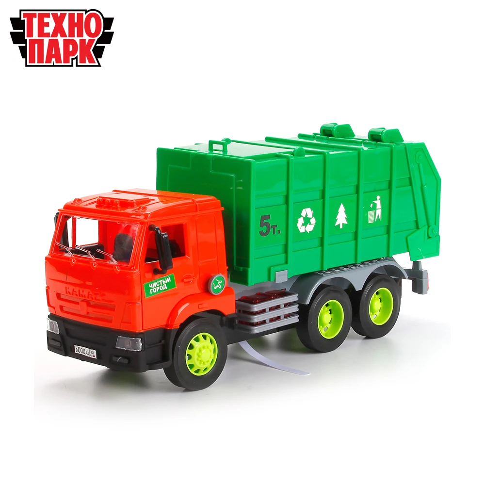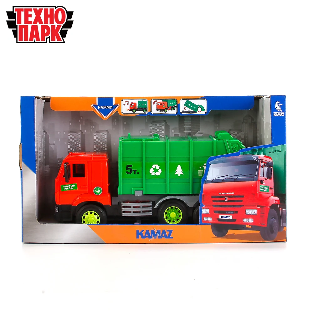 Пластиковая модель от компании "Технопарк" выполнена в виде Камаза в дизайне городского мусоровоза.Кабина исполнена в ярком оранжевом цвете, на дверях нанесены надписи «чистый город». Двери кабины открываются, благодаря чему можно рассмотреть, как тщательно она выполнена внутри. Игрушка порадует детей своей функциональностью: кузов машины и задний борт поднимается и опускается, благодаря чему с ней можно имитировать погрузку и разгрузку грузов. Машина снабжена звуковыми и световыми эффектами: если нажать на кнопку на корпусе игрушки, то можно услышать звук сигнализации и заводящегося двигателя и увидеть мигающие фары. Автомобиль снабжён инерционным механизмом, благодаря чему может самостоятельно проезжать некоторые расстояния от незначительного толчка. Изделие выполнено из высококачественного нетоксичного пластика и металла устойчивого к деформациям.Развивает мелкую моторику и воображение. Размер 25 см. Рекомендовано детям от 3-х лет. Работает от 3 батарейки типа LR 44 (AG 13) (входят в комплект).
