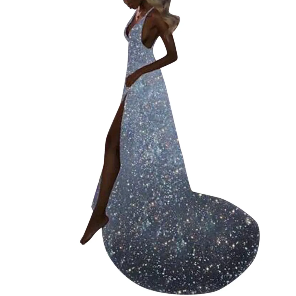 Женские вечерние платья с блестками для выпускного вечера, сексуальное Золотое вечернее платье подружки невесты, длинное платье с v-образным вырезом