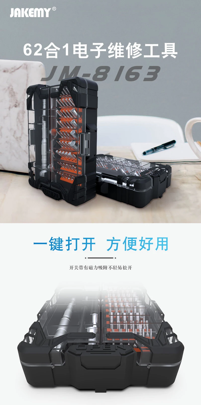 JAKEMY 62 в 1 набор многофункциональных прецизионных отверток Магнитный S2 бит отвертка для телефонов планшетный ПК инструмент для ремонта открывания