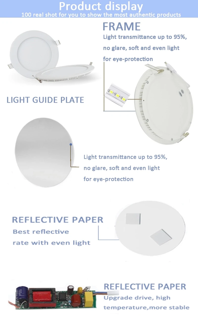 Ультра тонкие круглые светодиодные Панель светильник утопленный Кухня потолочная лампа для ванной 220V Светодиодный точечный светильник теплый белый/белый 3/6/9/12/15/18 W/24W