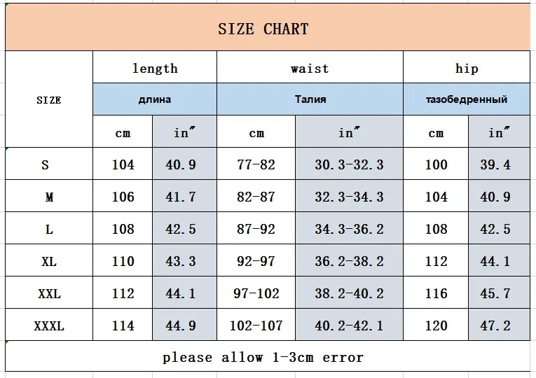 Таблица размеров для брюк: