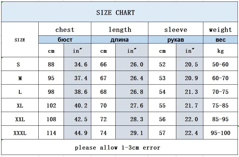 Таблица размеров для рубашки