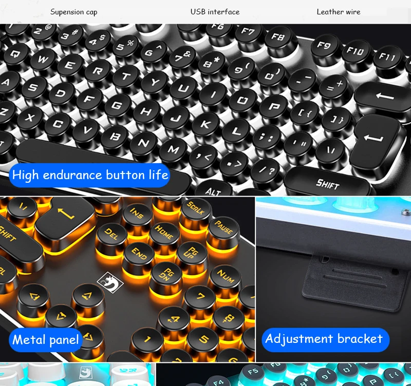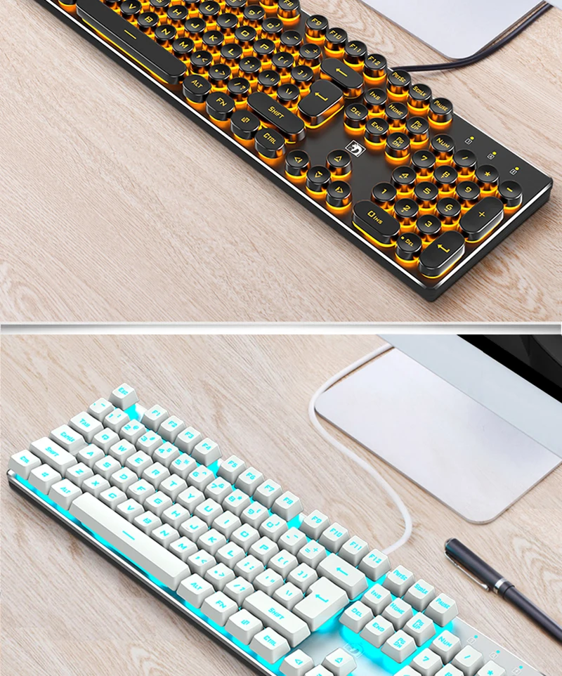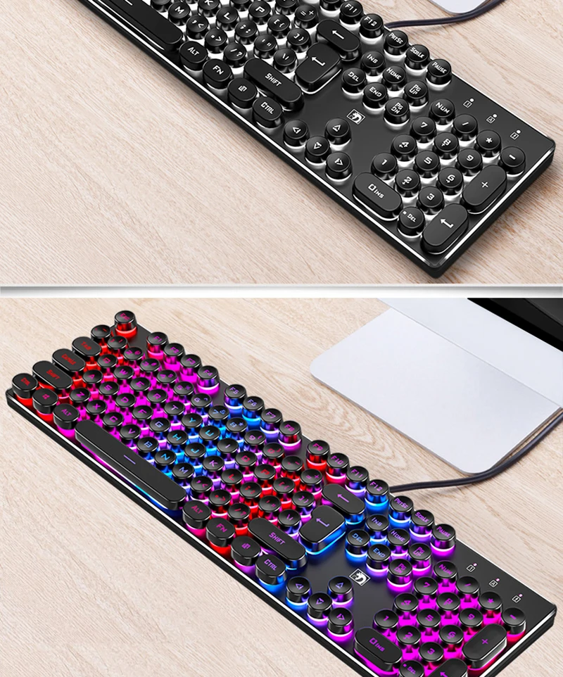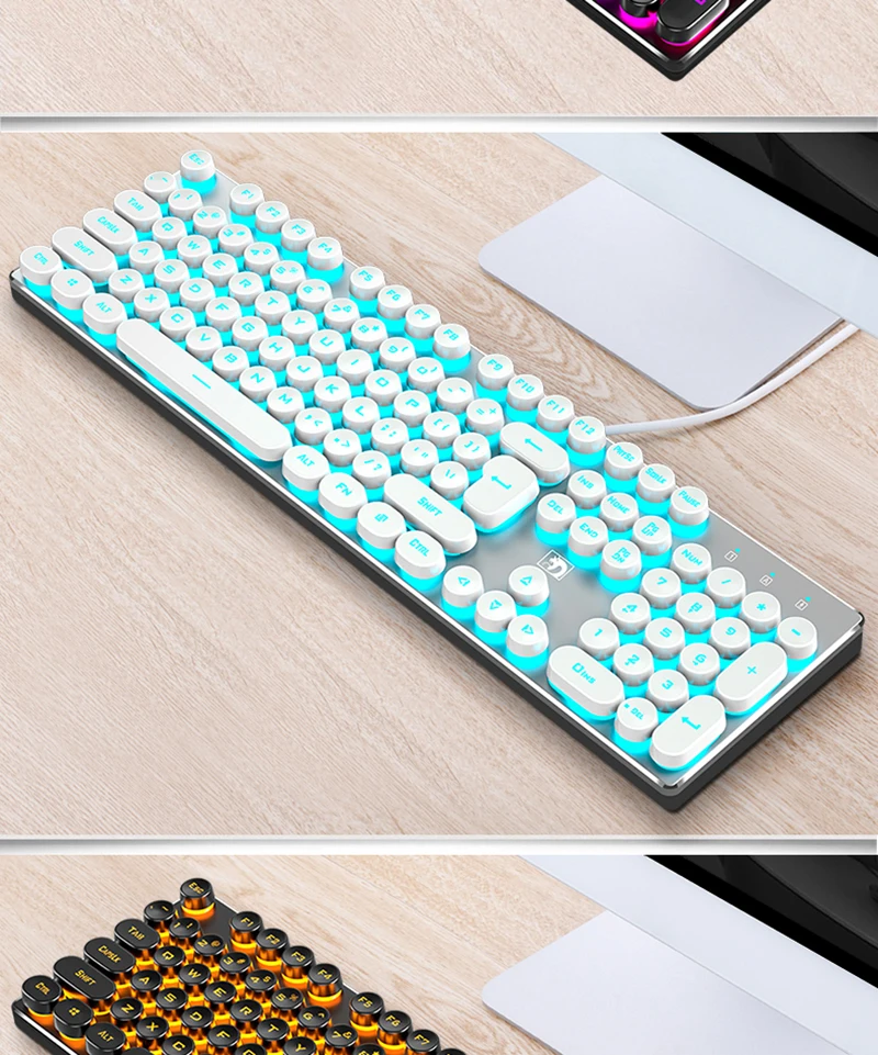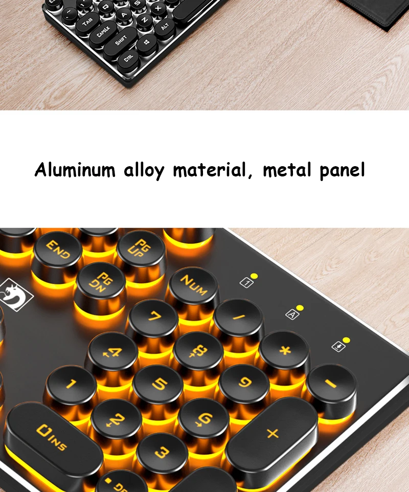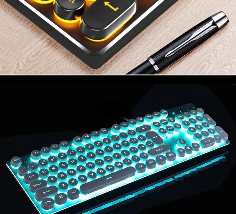 Механическая металлическая панельная клавиатура Ретро круглая квадратная светящаяся пишущая машинка Keycap104 с подсветкой USB Проводная клавиатура в стиле панк