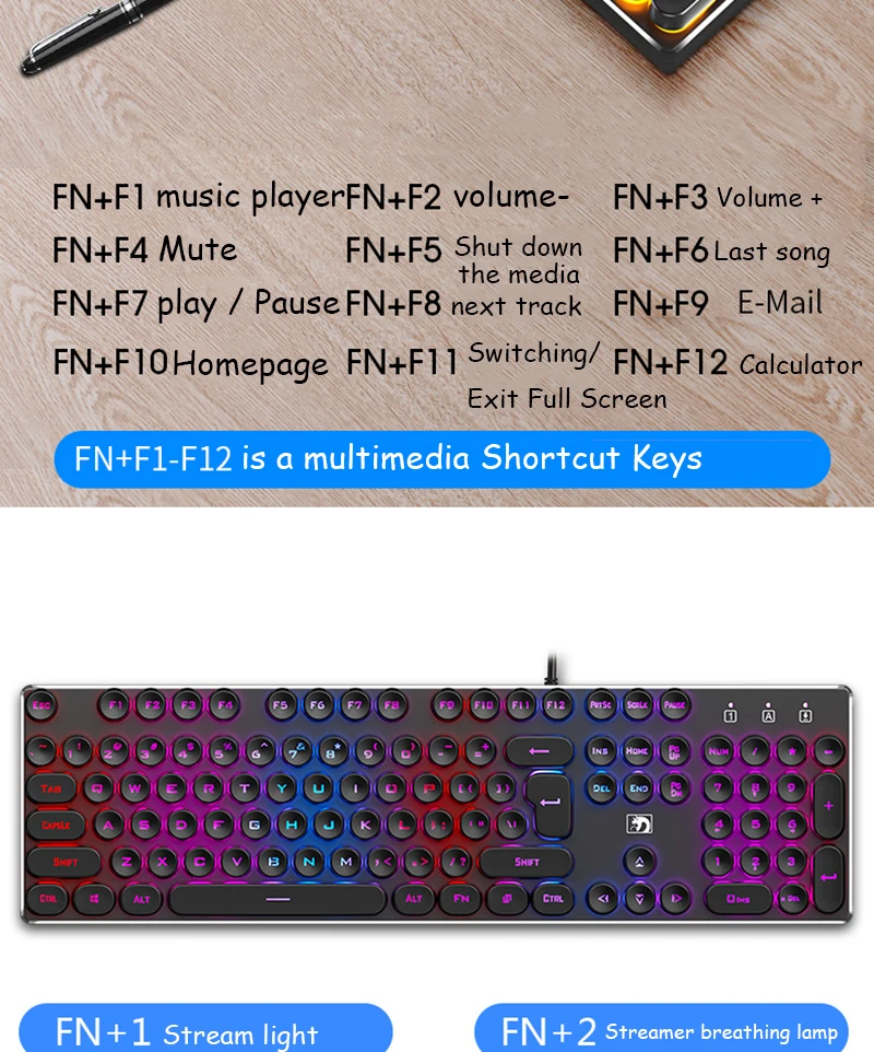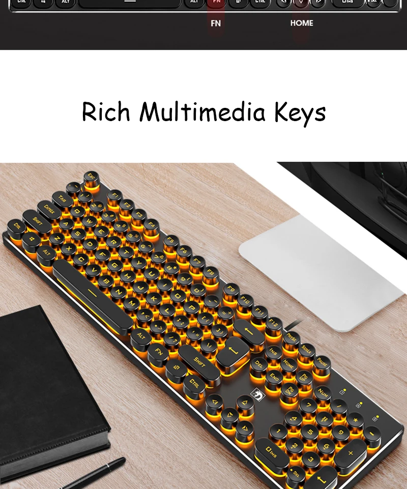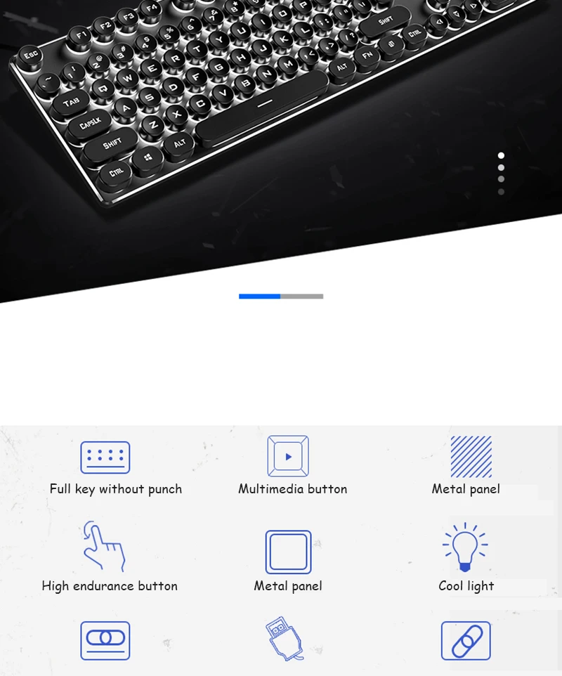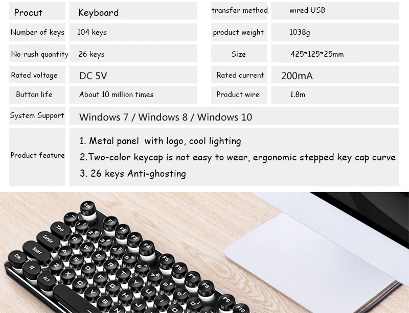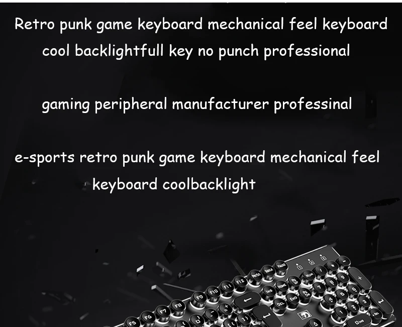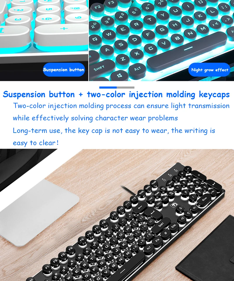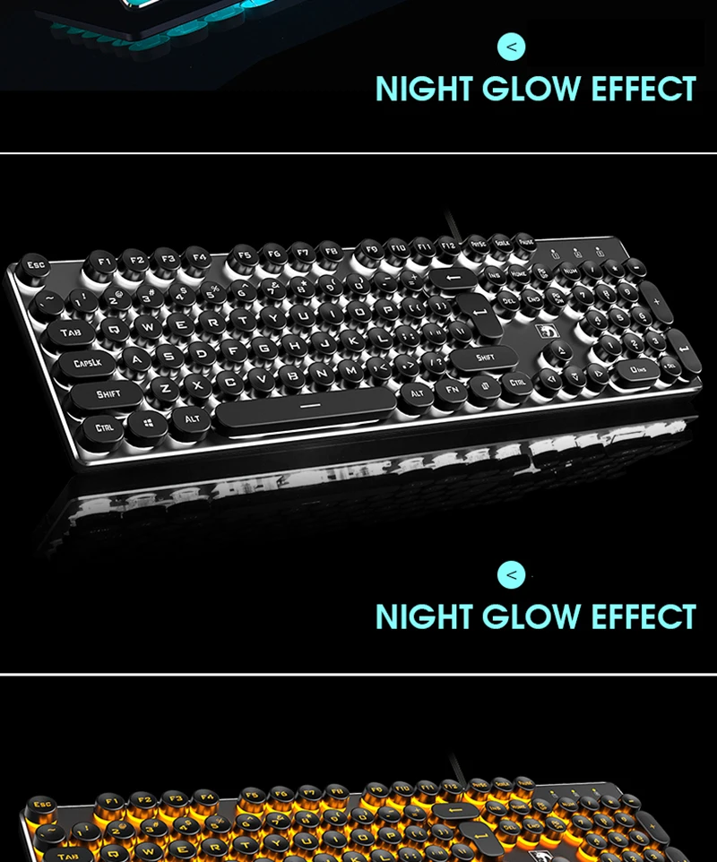 Механическая металлическая панельная клавиатура Ретро круглая квадратная светящаяся пишущая машинка Keycap104 с подсветкой USB Проводная клавиатура в стиле панк