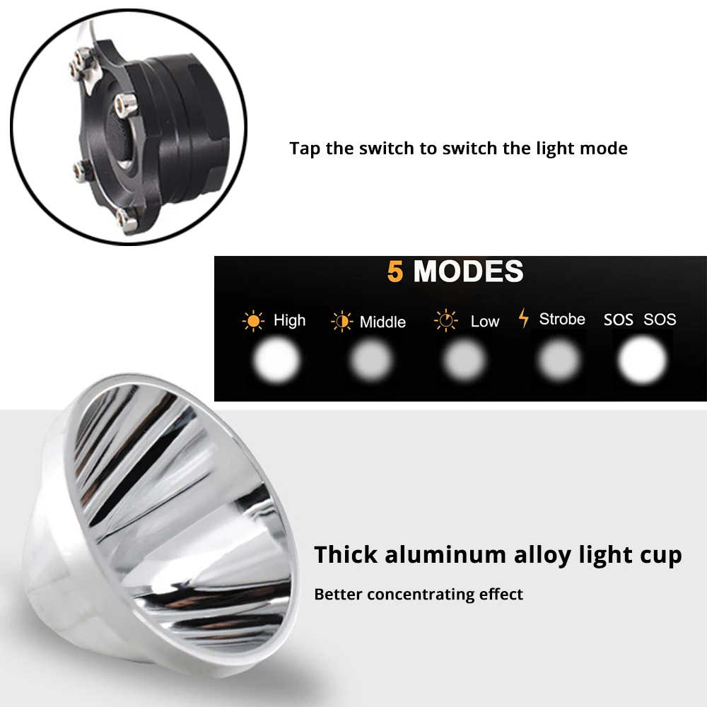 2: корпус лампы изготовлен из высокопрочного алюминиевого сплава, который устойчив к падению и сбой. Не беспокойтесь о легком повреждении.