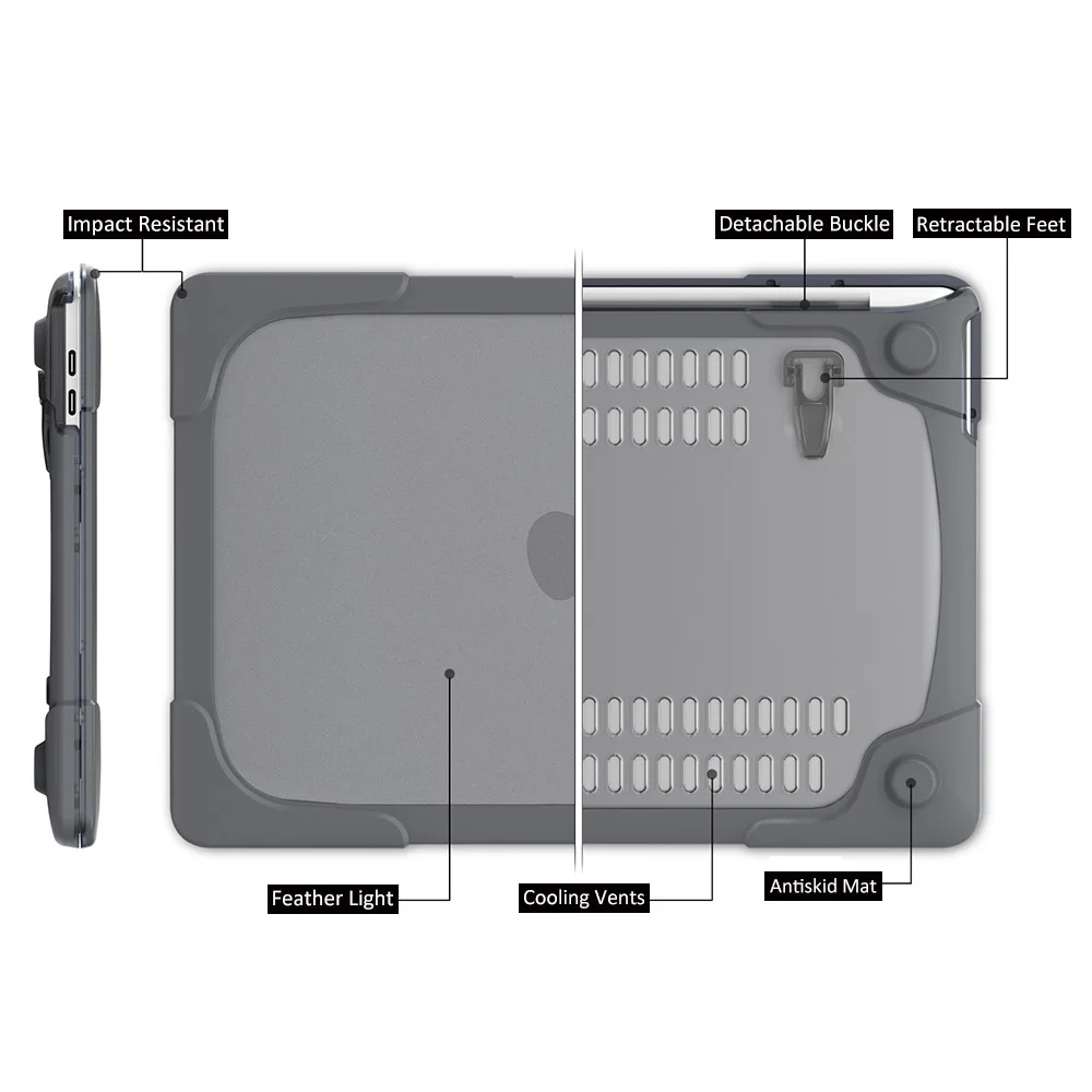 1.【 Сверхпрочный дизайн 】-Бронированная оболочка и ударопрочные бамперы, амортизирующий материал защищает все края и углы вашего ноутбука Air 13 ".
