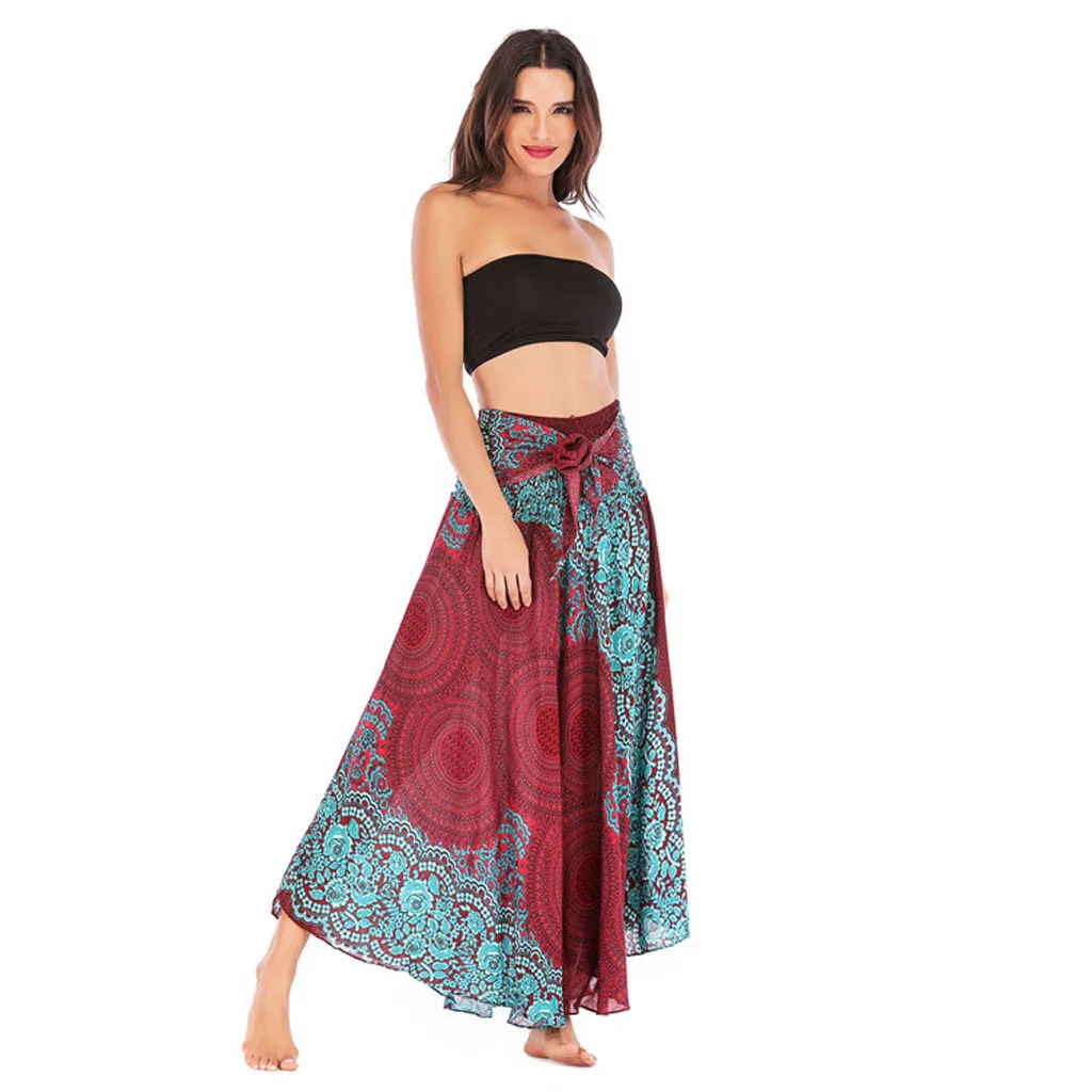 Женская длинная хиппи богемная Цыганская Бохо Цветочная эластичная талия Цветочная юбка через шею