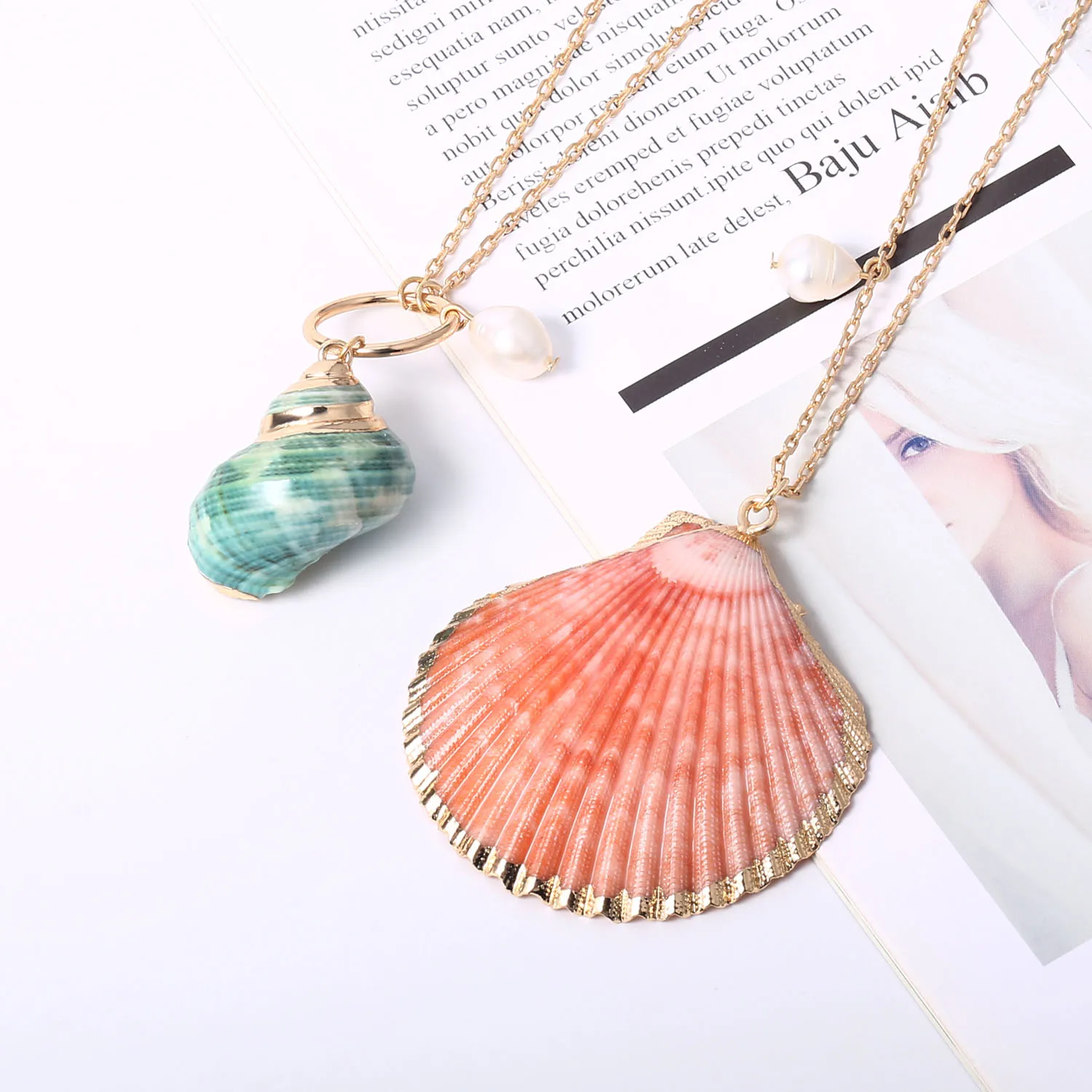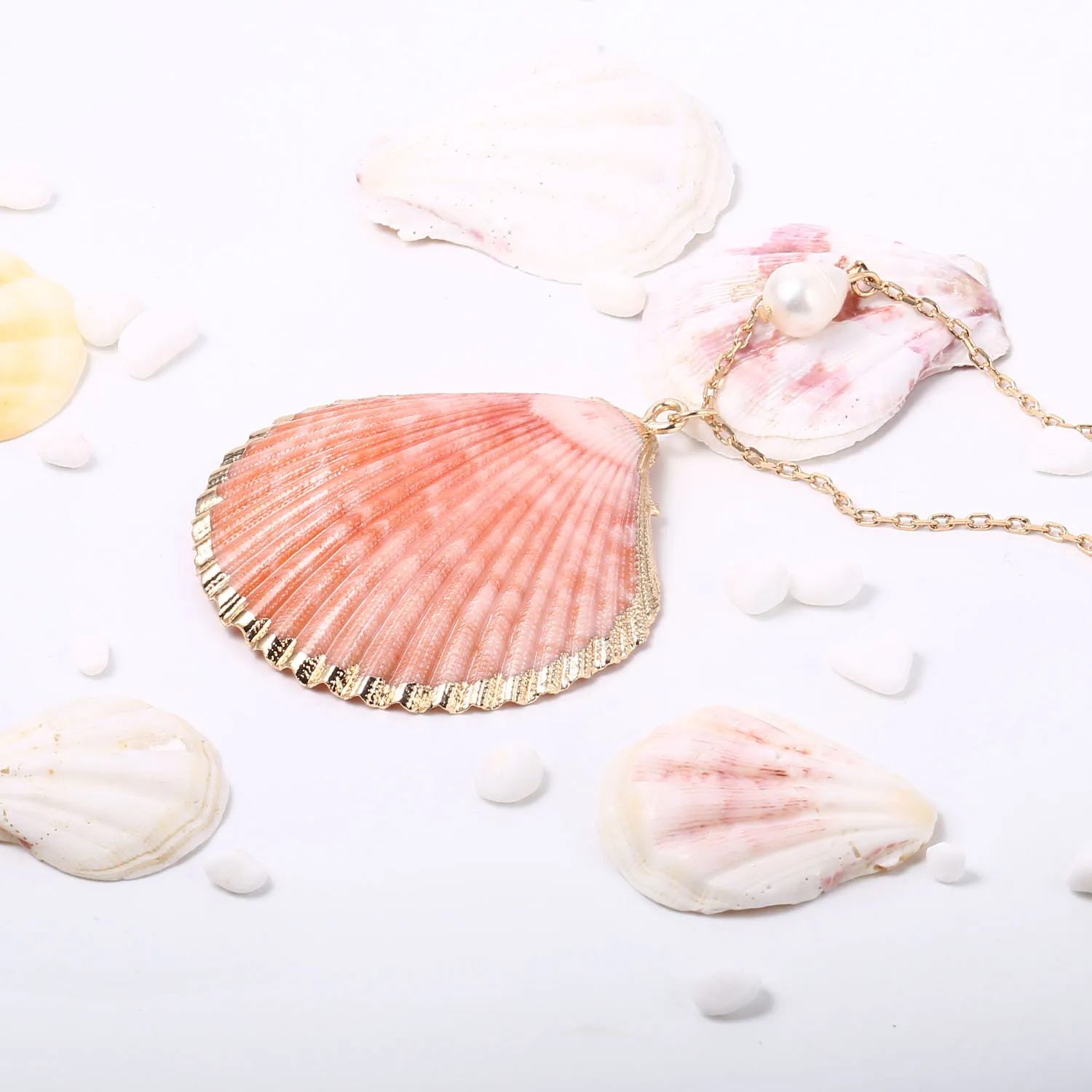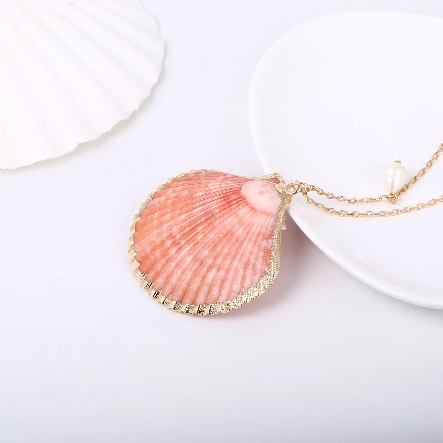 Новинка 2019, Трендовое женское ожерелье из кораллового гребешка, хит продаж, серия океана, покрытое жемчугом ожерелье для женщин