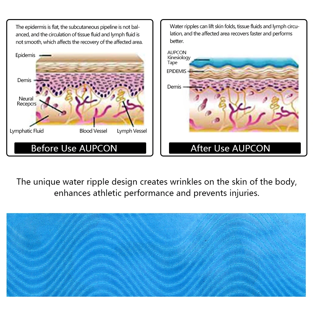 4) Это не ограничительно, что обеспечивает полный спектр движений; Клейкая подложка волнового узора движется вместе с кожей и мышцами.