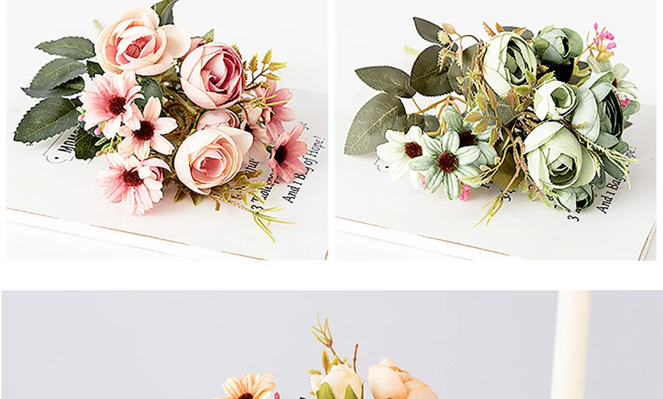 Гибридный букет Роза бутоны искусственные хризантемы Шелковый Искусственный цветок длина 30 см для дома Свадебные украшения AQ174