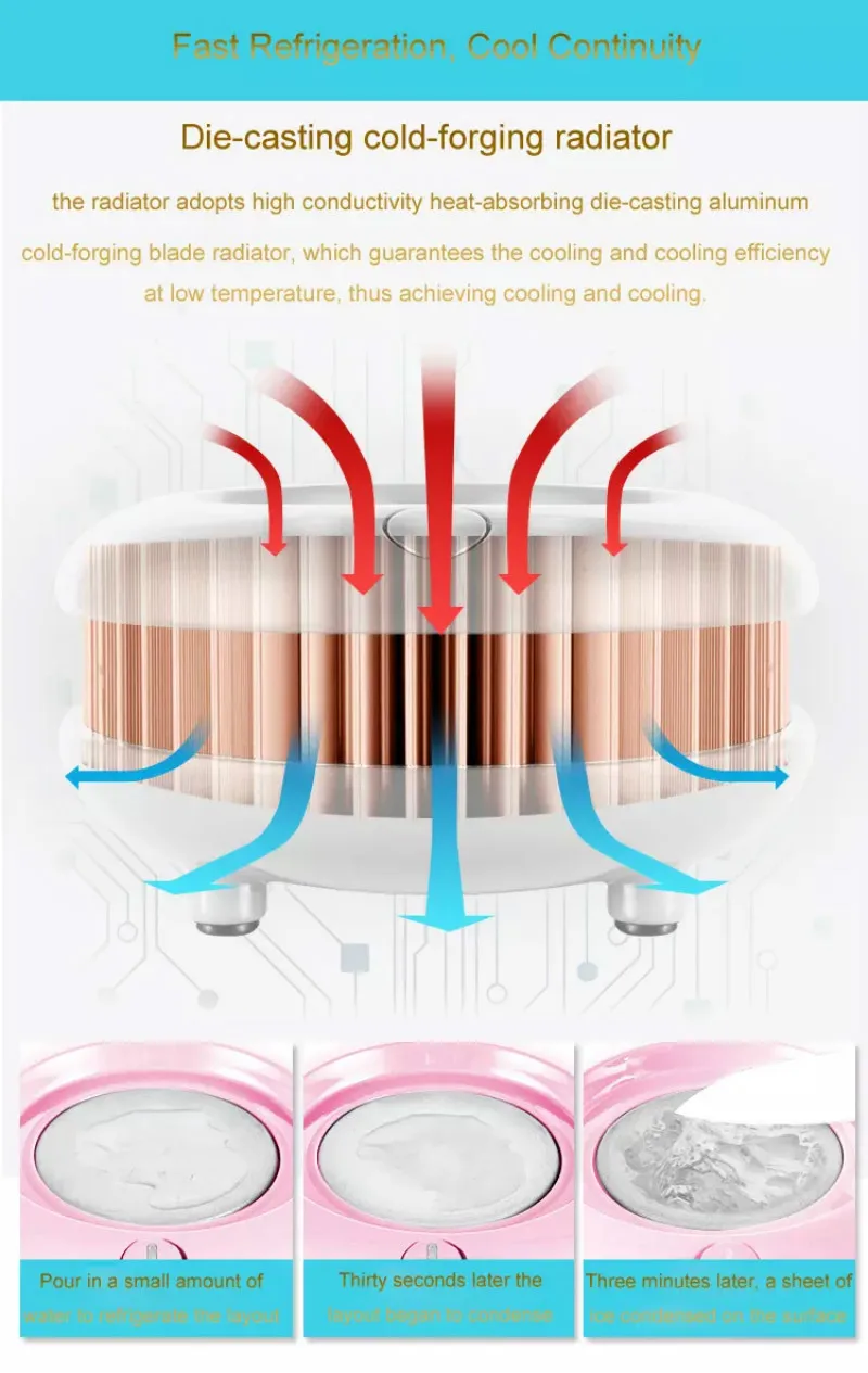 3. Быстрый и простой способ использования. После включения питания и переключатель включен, температуру и металлическим циферблатом, основания начинает остыть.