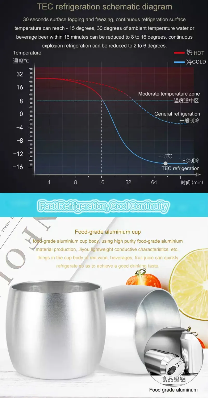 1. Одна кнопка, чтобы открыть режим охлаждения, быстро достичь точки замерзания, температура охлаждения может быть уменьшена до 25 градусов, может быть охлаждено мороженое, пиво, йогурт, сок и так далее.