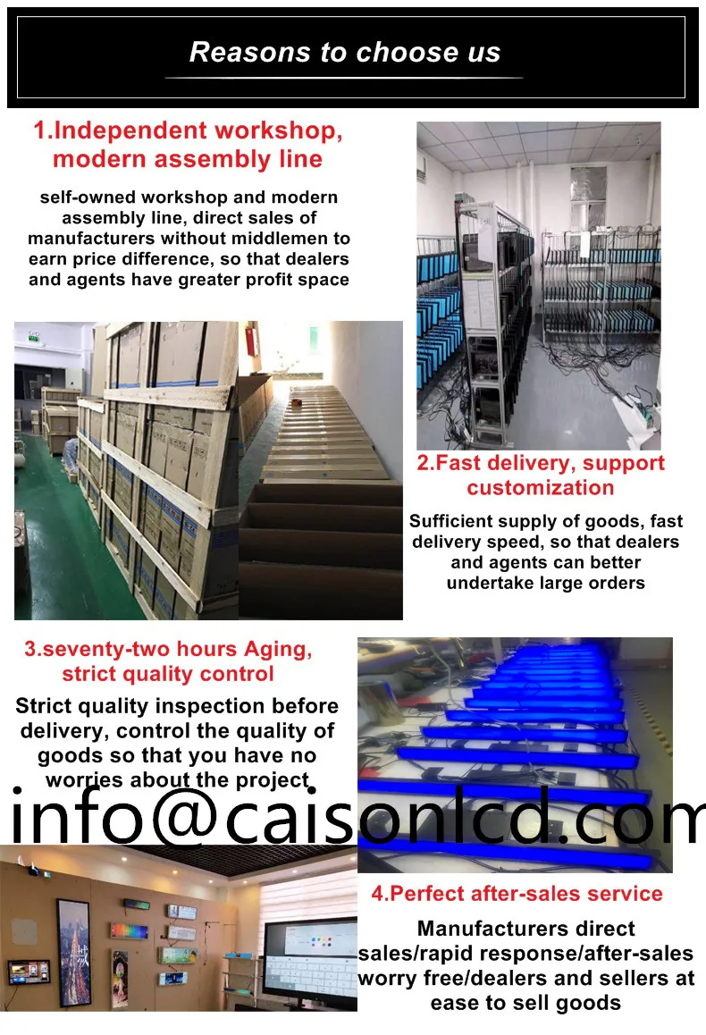 Мы можем предоставить следующие модели ЖК-экрана и предоставить ряд аксессуаров, таких как плата драйвера, мультимедийная плата плеера, плата андроида, оболочка и т. д. если вам нужно, пожалуйста, свяжитесь с нами, спасибо!