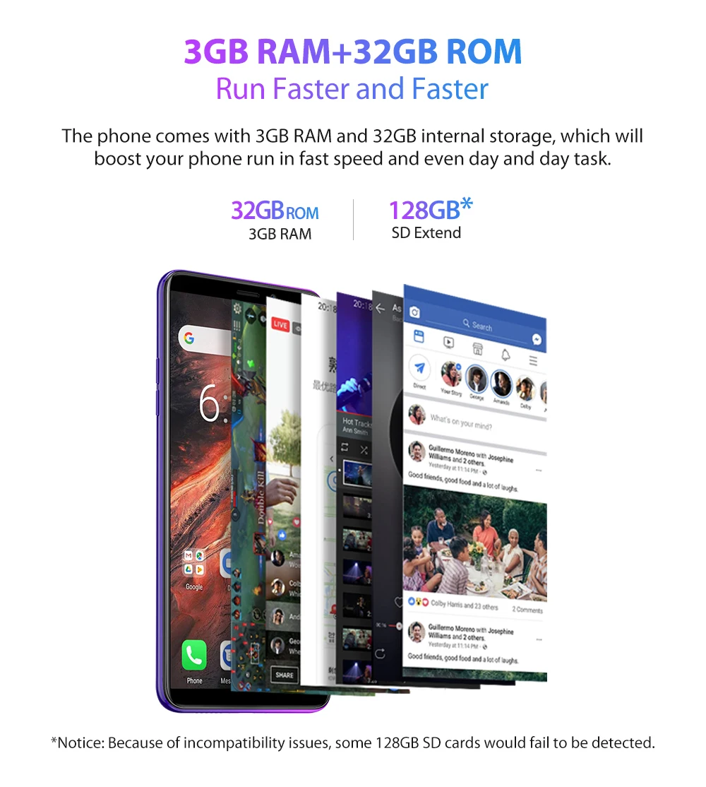 32 Гб(Закон оСверьте воспользоватьсяВозможность внутреннего хранения телефона может отличаться в зависимости от конфигурации программного обеспечения вашего телефона. Это меньше, чем технические данные. Мы не можем принять спор по поводу разницы в данных ПЗУ/ОЗУ.)