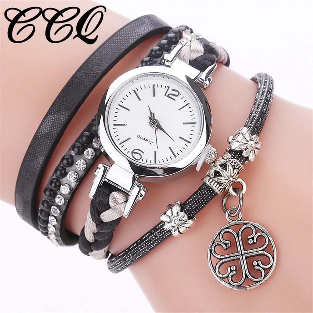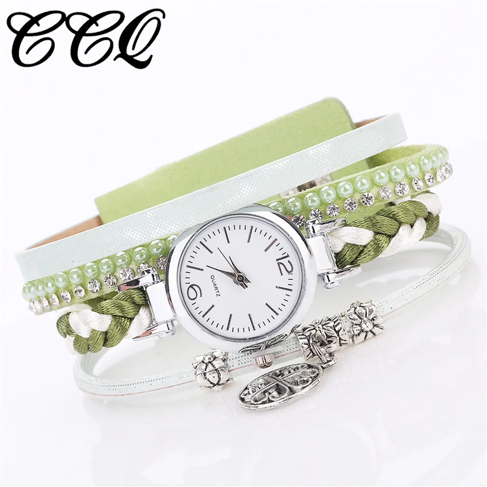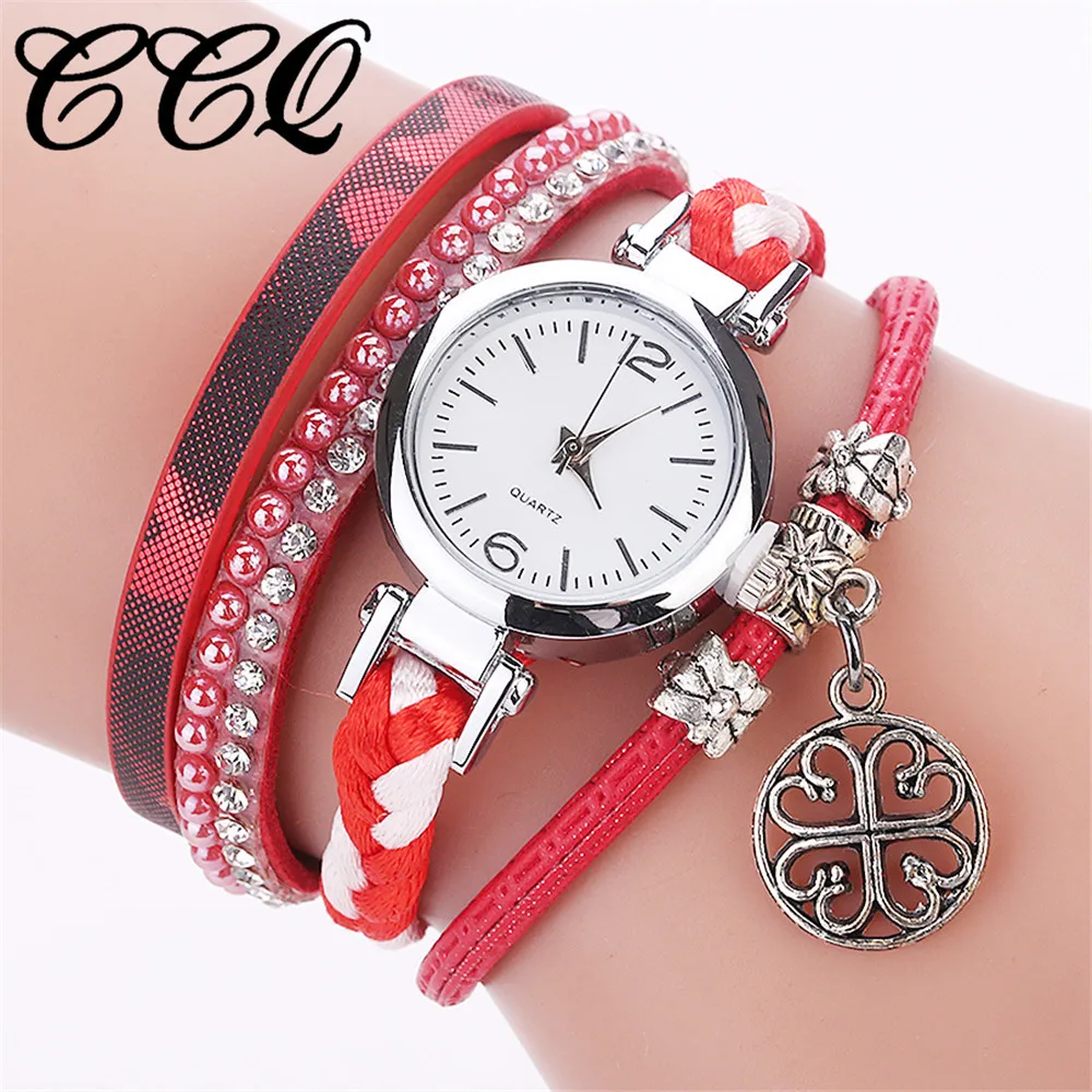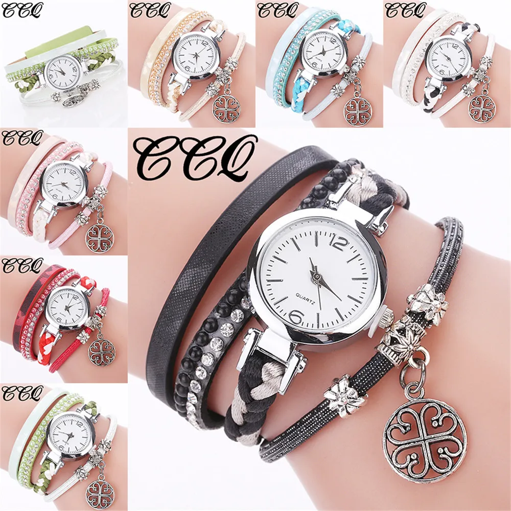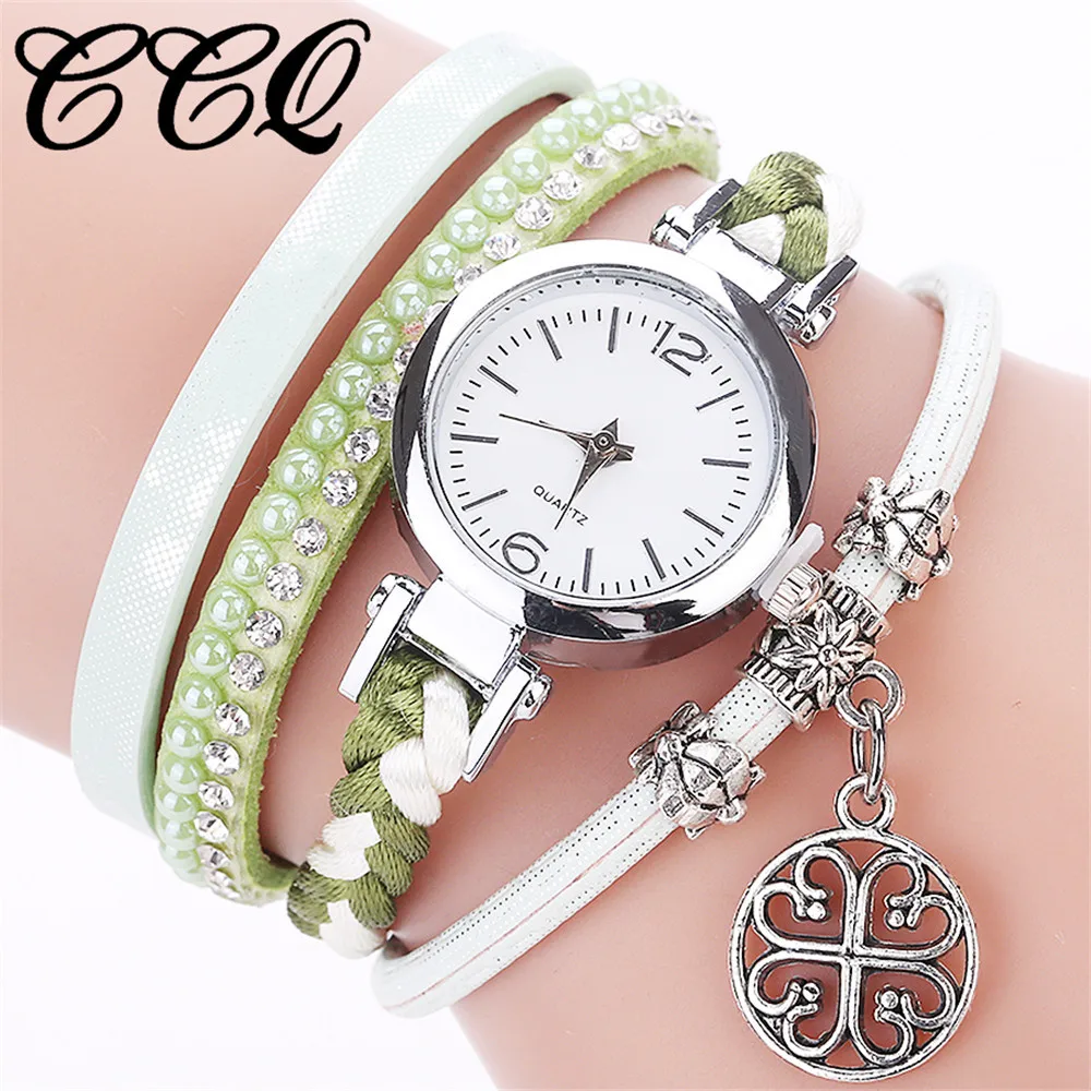 CCQ Women Fashion Casual Analog Quartz Women Rhinestone Pendant Bracelet Watch