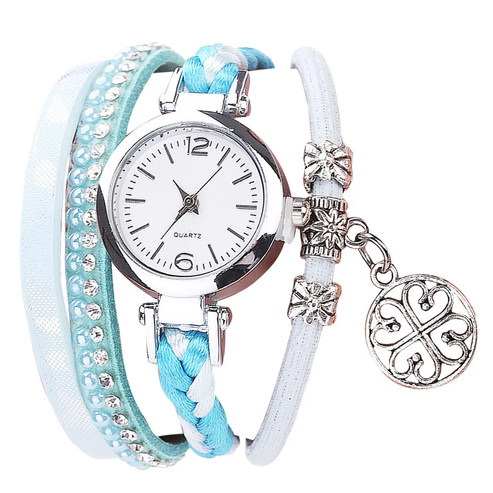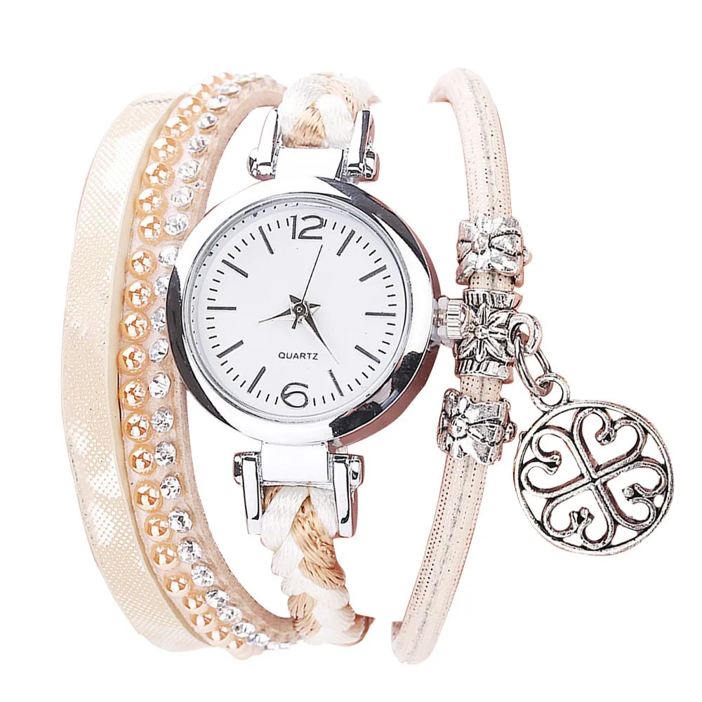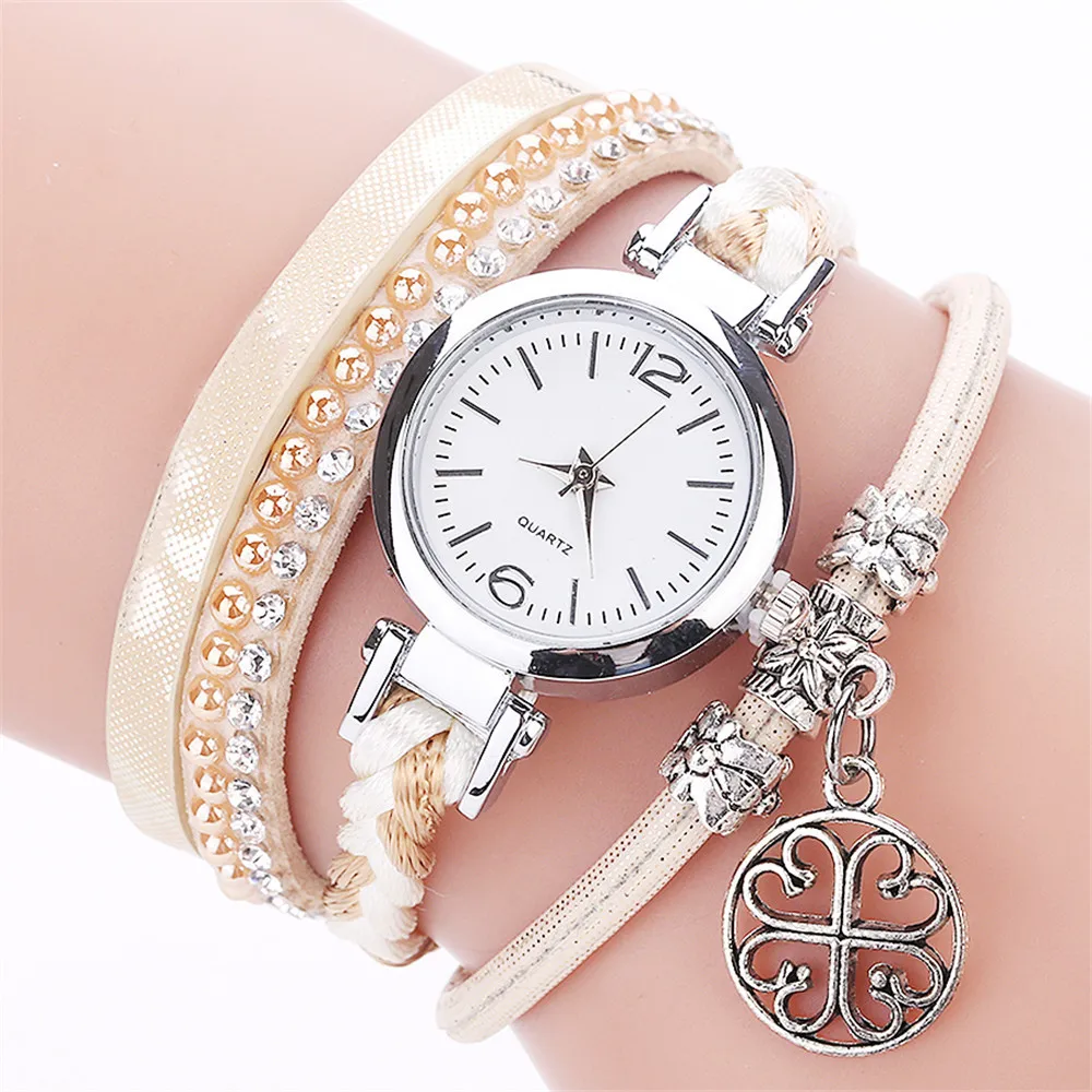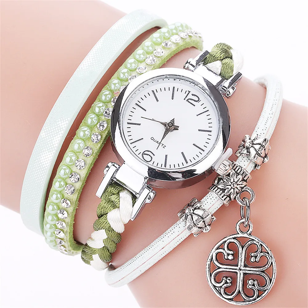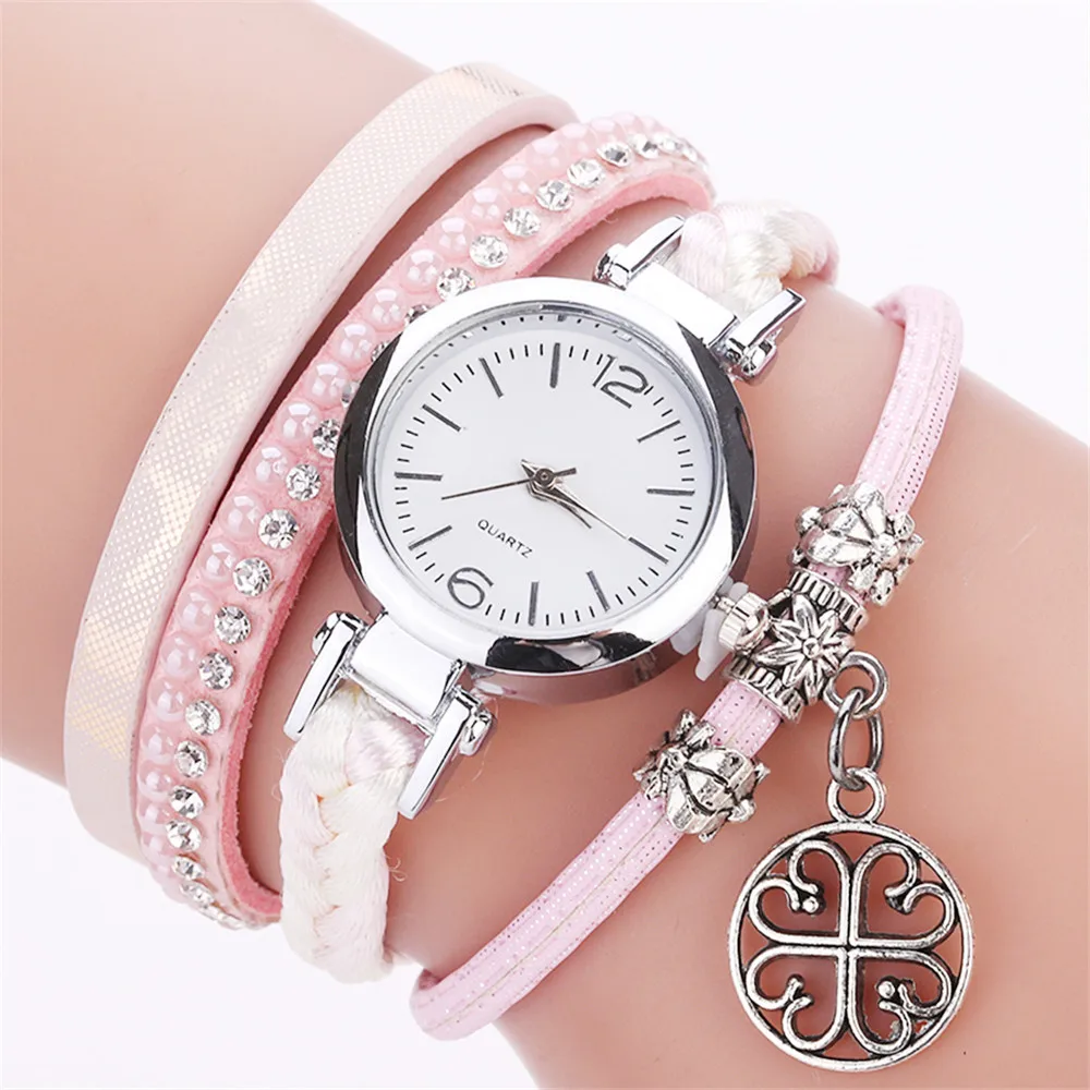 CCQ Women Fashion Casual Analog Quartz Women Rhinestone Pendant Bracelet Watch