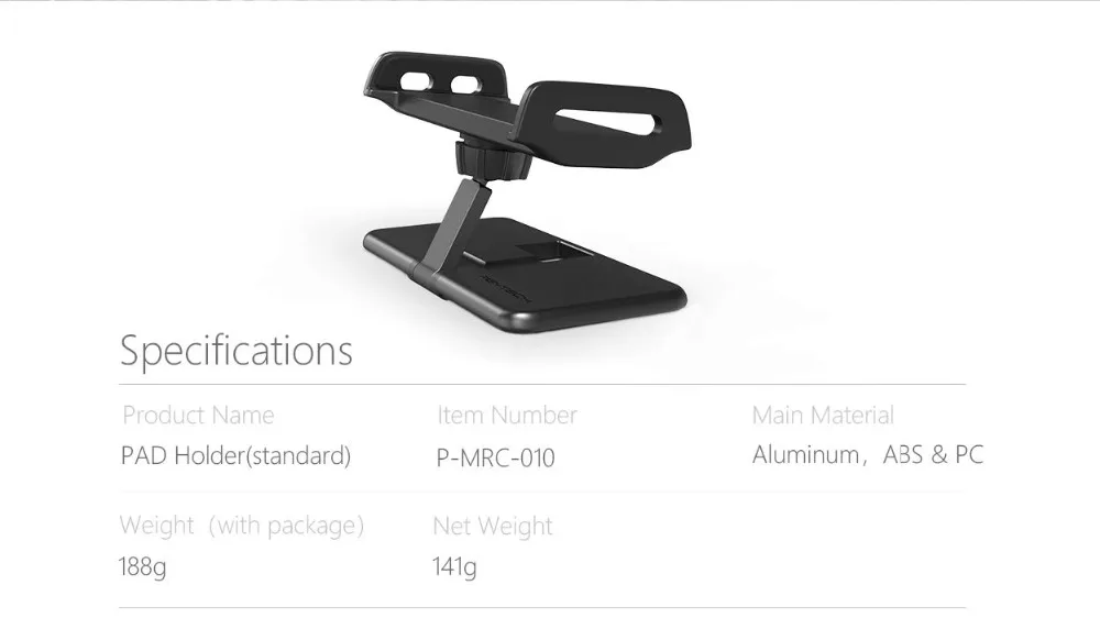 PAD Holder (стандартная версия)-это мобильный телефон с держателем (от 7 до 10 дюймов), который подходит для пульта дистанционного управления Mavic 2, Mavic Air, Mavic Pro и Spark. Держатель подкладки имеет опору, которая вращается на 360 ° и может поворачиваться по желанию, что позволяет записывать каждый прекрасный момент без ограничений по угол. Мягкая вставка из ЭВА держит ваш коврик на месте и всегда защищен. Свернуть его, чтобы взять его с собой, это только в том случае, 15,5 см в длину, как ваш IPhone 6Plus. Благодаря регулируемым позициям и самостоятельной конструкции, вы можете разместить его непосредственно на любом столе. Технические характеристики: Название продукта: держатель для подавления массовых беспорядков (стандартный) номер артикула P-MRC-010 основной Материал Алюминий для женщин, АБС-пластиковый чехол для телефона из поликарбоната и Вес (с посылка) 188 г Вес нетто 141 г инновация для MAVIC 2/MAVIC AIR/MAVIC PRO/SPARK Накладка держатель позволяет вам наслаждаться контроль над вашим полета на большом экране, и он может использоваться в качестве настольного подставка.