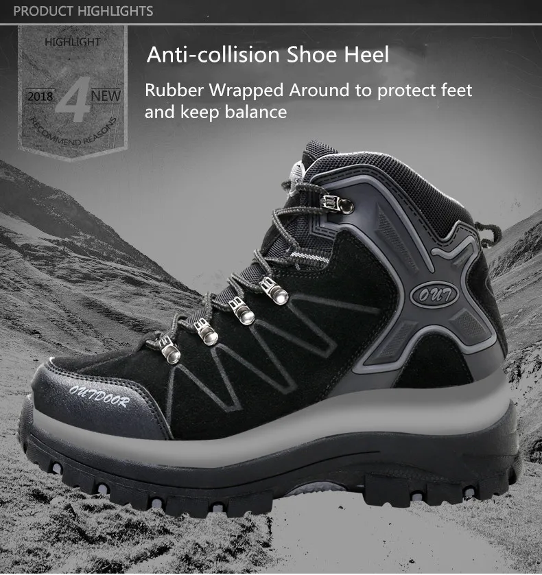 1. Двухсторонний замшевый материал 2. 360 дышащий 3. Резиновая подошва 4. Противоударный каблук обуви