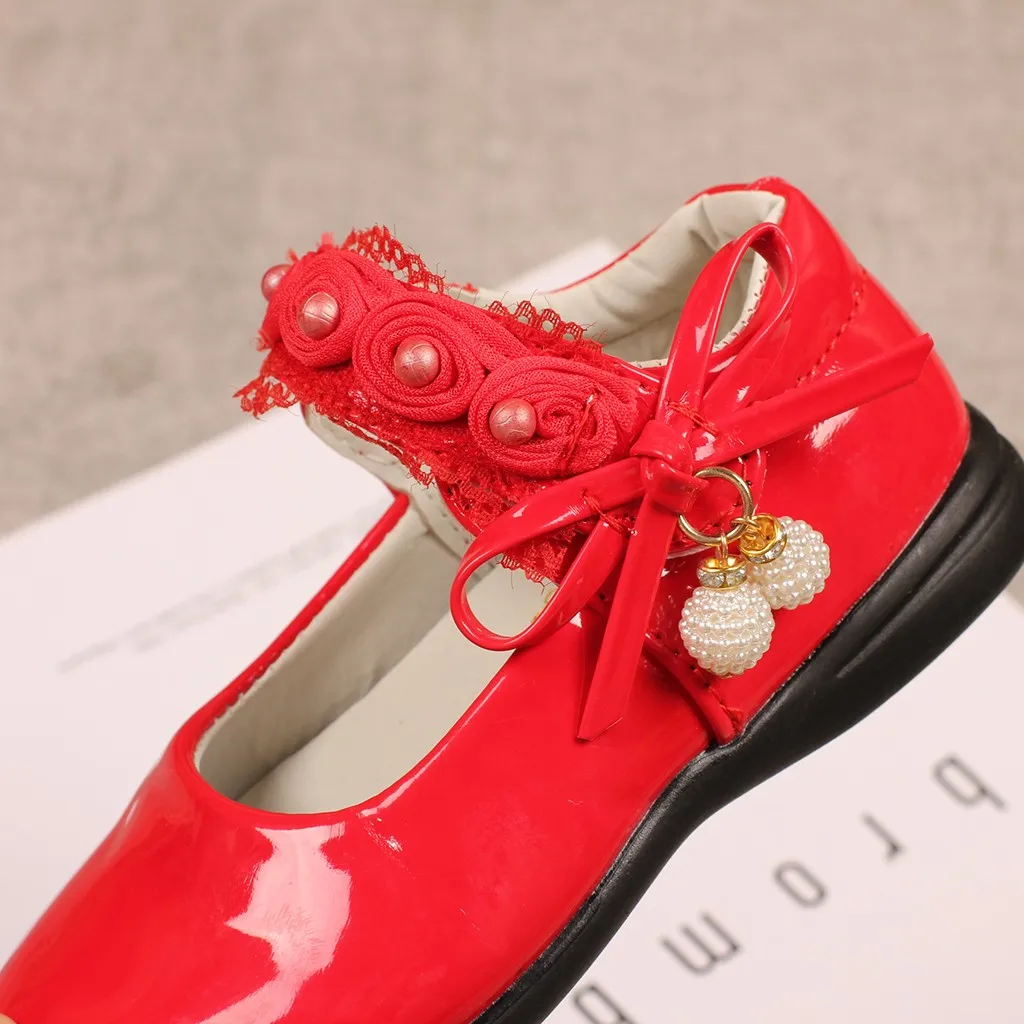 Детские кружевные туфли принцессы с жемчужинами и цветами для маленьких девочек