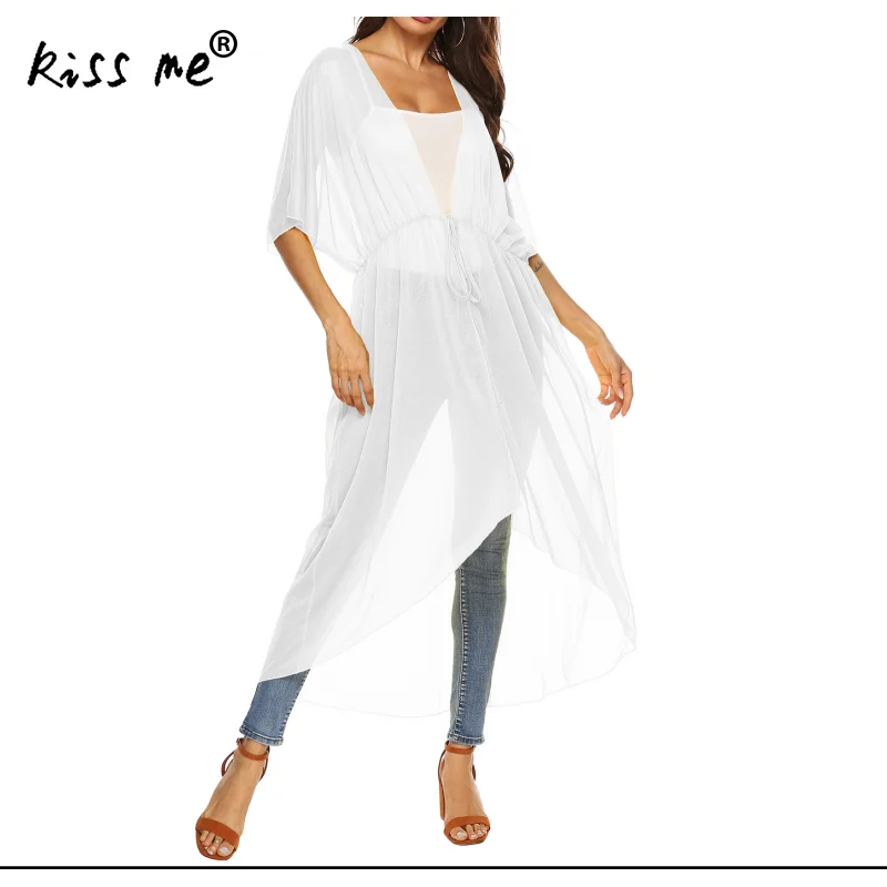 Новый пляжный купальный костюм, летний прозрачный купальный костюм, сексуальный бикини, накидка для женщин, Шифоновая туника, макси-платье