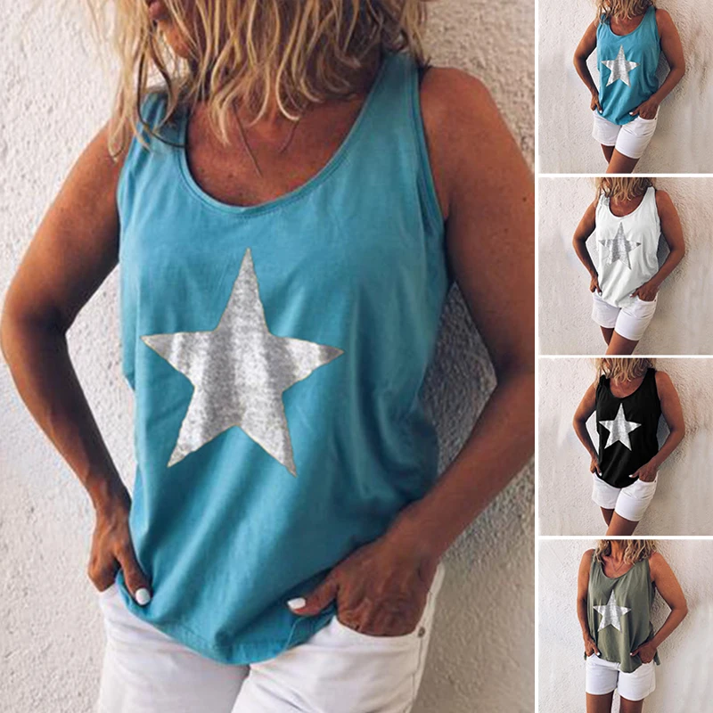 * Описание товара:Женская одежда, летняя мода, круглый вырез, свободный без рукавов, с принтом, спортивный жилет/топы, плюс размер
