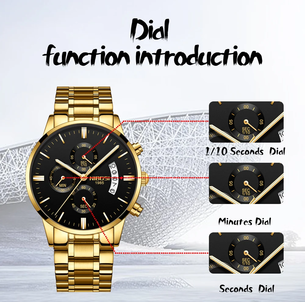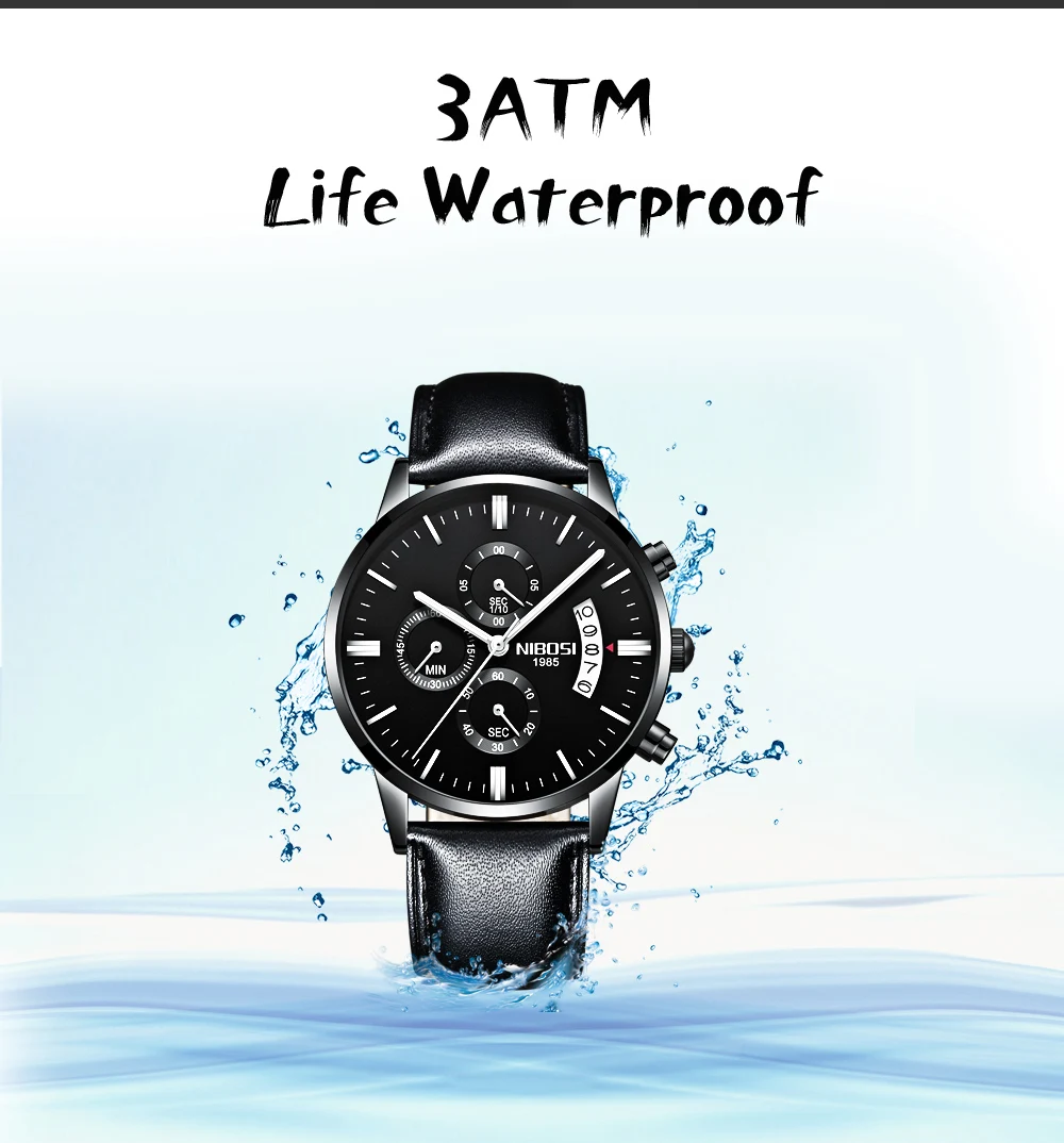 NIBOSI новые модные мужские часы Аналоговые кварцевые наручные часы 30 м водонепроницаемые Хронограф Авто-дата роскошные часы мужские Montre Homme