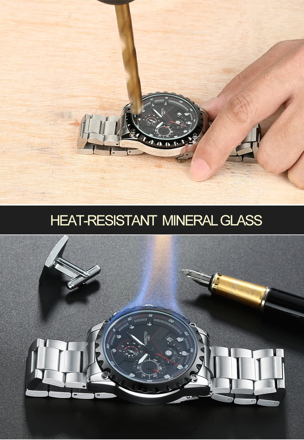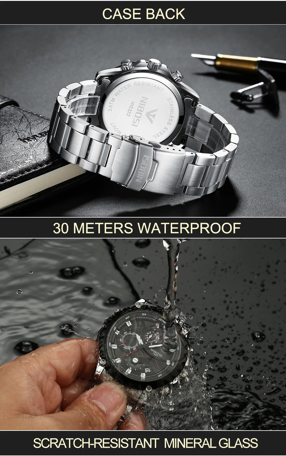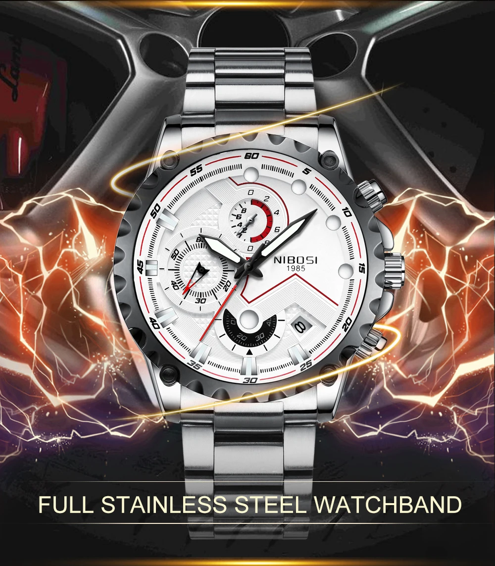 Relogio Masculino NIBOSI спортивные мужские часы с хронографом Лидирующий бренд Роскошные полностью Стальные кварцевые часы водонепроницаемые часы с большим циферблатом для мужчин