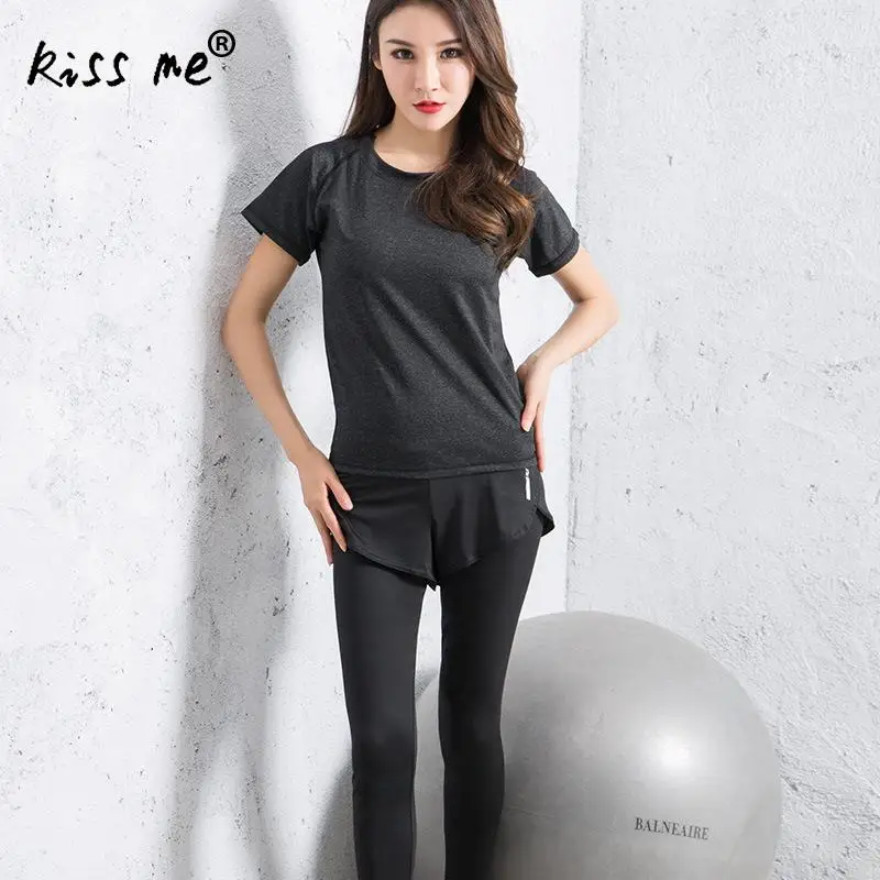 Женский спортивный костюм с коротким рукавом из трех предметов, спортивная одежда для занятий спортом, дышащая одежда для фитнеса, набор для занятий йогой