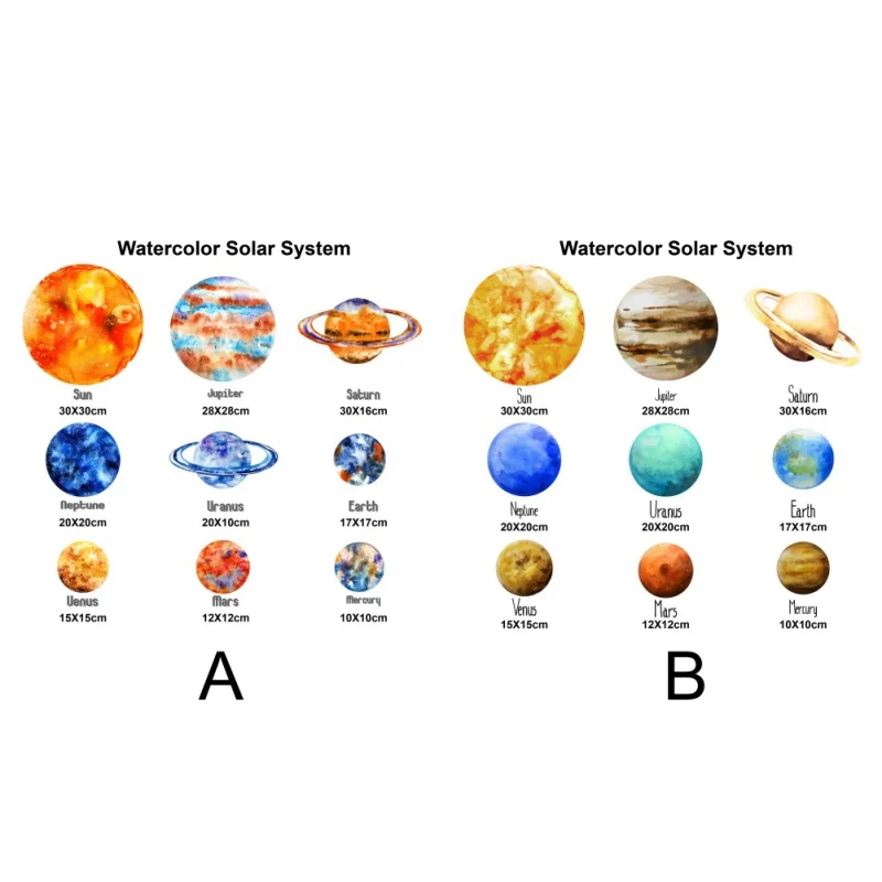Описание изделия: Материал: ПВХ Количество: 9 шт./компл. Размер упаковки: 31x31 см узор: наклейка на плоскую стену Особенности: Изготовлен из съемного самоклеящегося ПВХ материала, нетоксичный и никогда не повреждает стену. Прочный, устойчивость к давлению, ударопрочность, влагостойкость. Создайте свою собственную галактику с 9 акварельными планетами, светящимися ярко всю ночь, декор вашей гостиной, спальни, кухни или детской комнаты. Продукт, который вы получите, содержит 9 наклеек. Начиная от солнца, Меркурий, Венеры, земли с Луной, Марсом, Юпитером, Сатурном, Ураном, Нептуном. Легко наносится, просто отклеивается и прилипает. Они могут быть нанесены на любую гладкую поверхность и перемещены вокруг, не повреждая окрашенные поверхности или оставляя за собой липкие остатки. (Убедитесь, что место, которое вы хотите приклеить, является чистым, без пыли и остатков.) Размер: солнце: 30x30 см/12 "x 12", Юпитер: 28x28 см/11 "x 11", Сатурн: 16x30 см/6,3 "x 12", уран: 20x20 см/7,87 "x 7,87", Нептун: 20x20 см/7,87 "x 7,87" , Земля: 17x17 см/7 "x 7", Венера: 15x15 см/5,9 "x 5,9", Марс: 12x12 см/4,7 "x 4,7", ртуть: 10x10 см/3,9 "x 3,9". Прекрасный образовательный Подарок для начинающего астронавта или любого любопытного ребенка. В комплект входит: 9 шт./компл. x светящиеся наклейки Примечания: 1. Переход: 1 см = 10 мм = 0,39 дюйма, 1 г = 0,001 кг = 0,0022lb = 0,035 унций. 2. Из-за разницы в цвете экрана цвет может немного отличаться от того, что вы ожидаете, пожалуйста, учитывайте это.