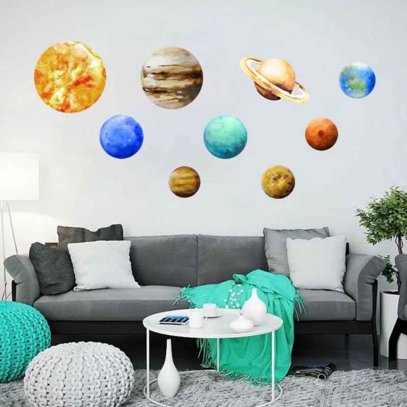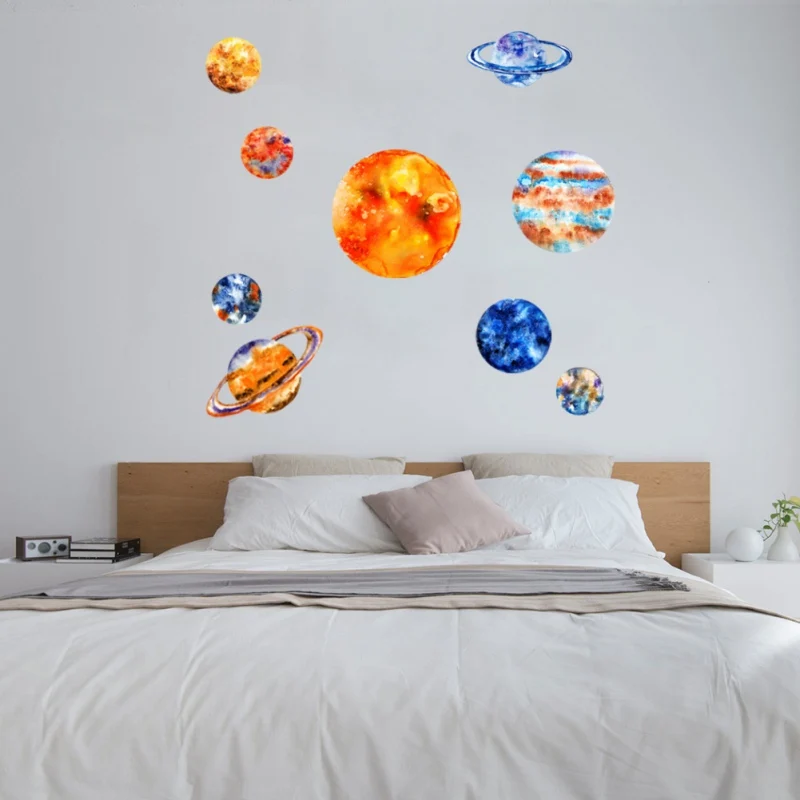 Светится в темноте Акварельная солнечная система наклейки на стену для детской комнаты, спальни, гостиной, домашнего декора