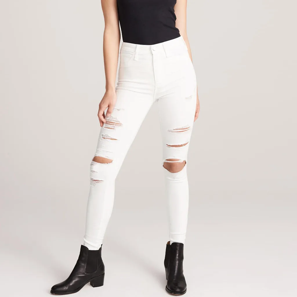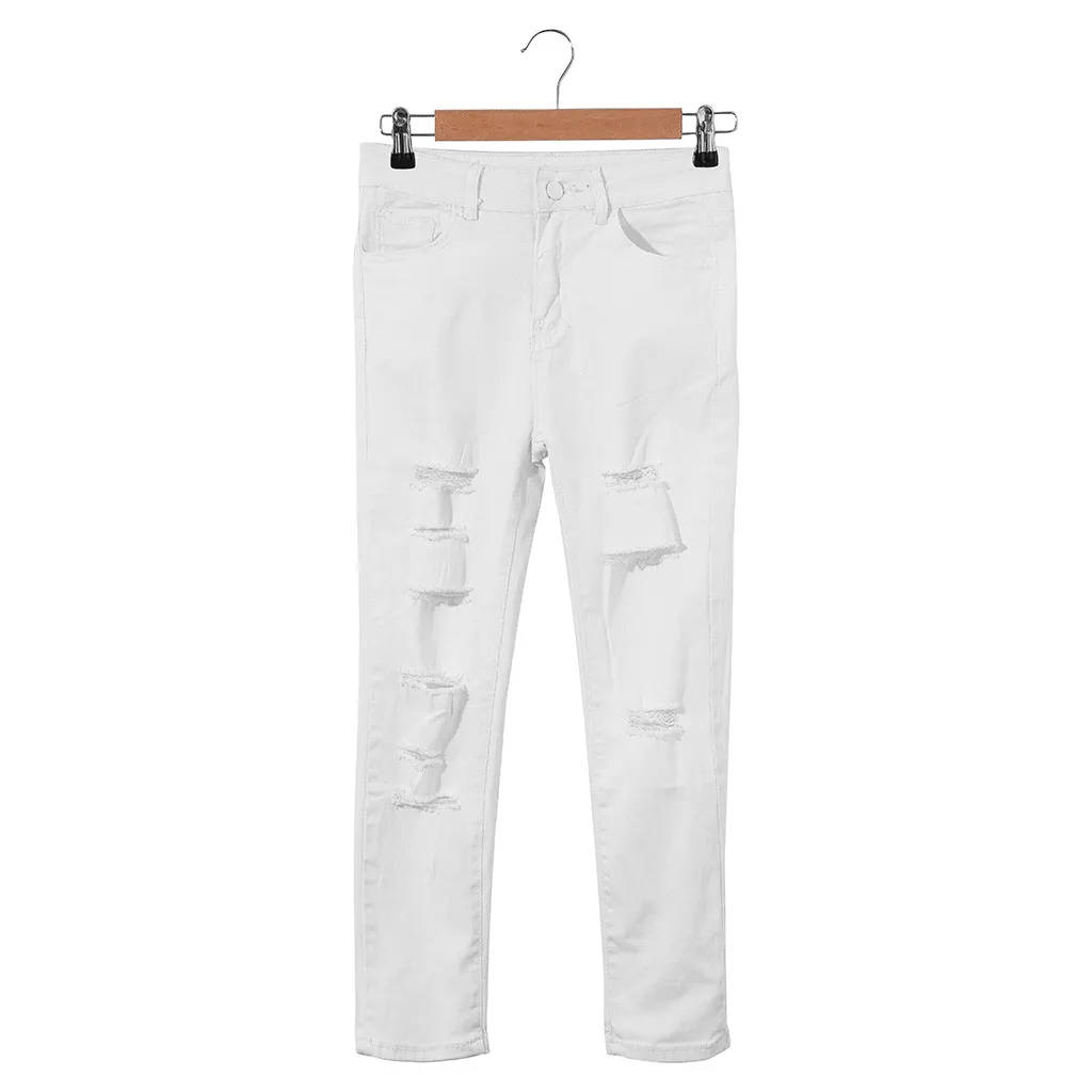 3. Стиль: модный и повседневныйВысокаяОбхват талииОтверстие Джинсовая тканьБрюки для девочек,