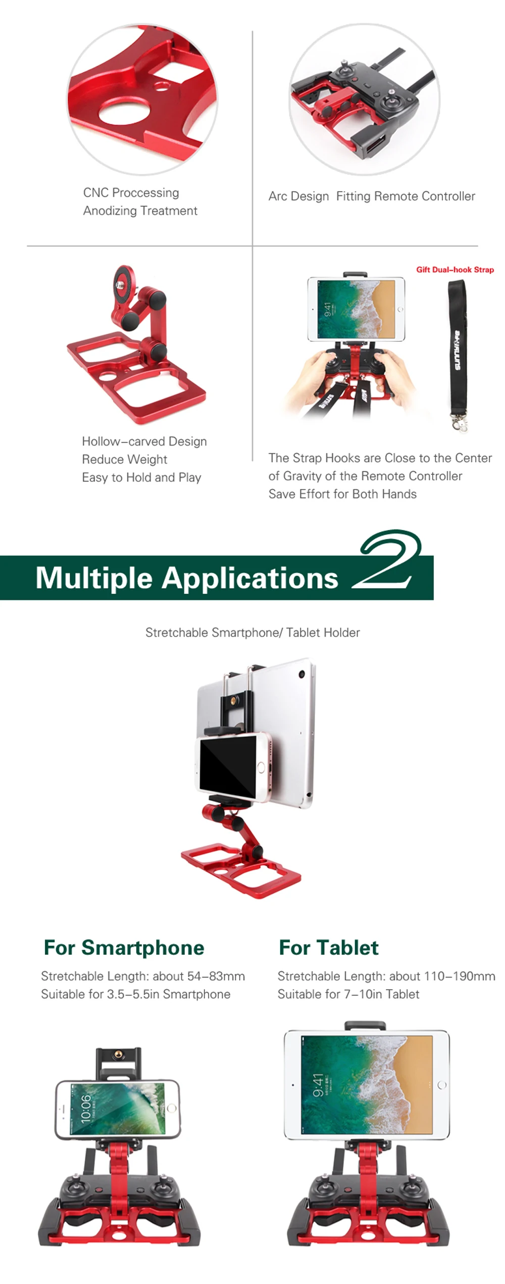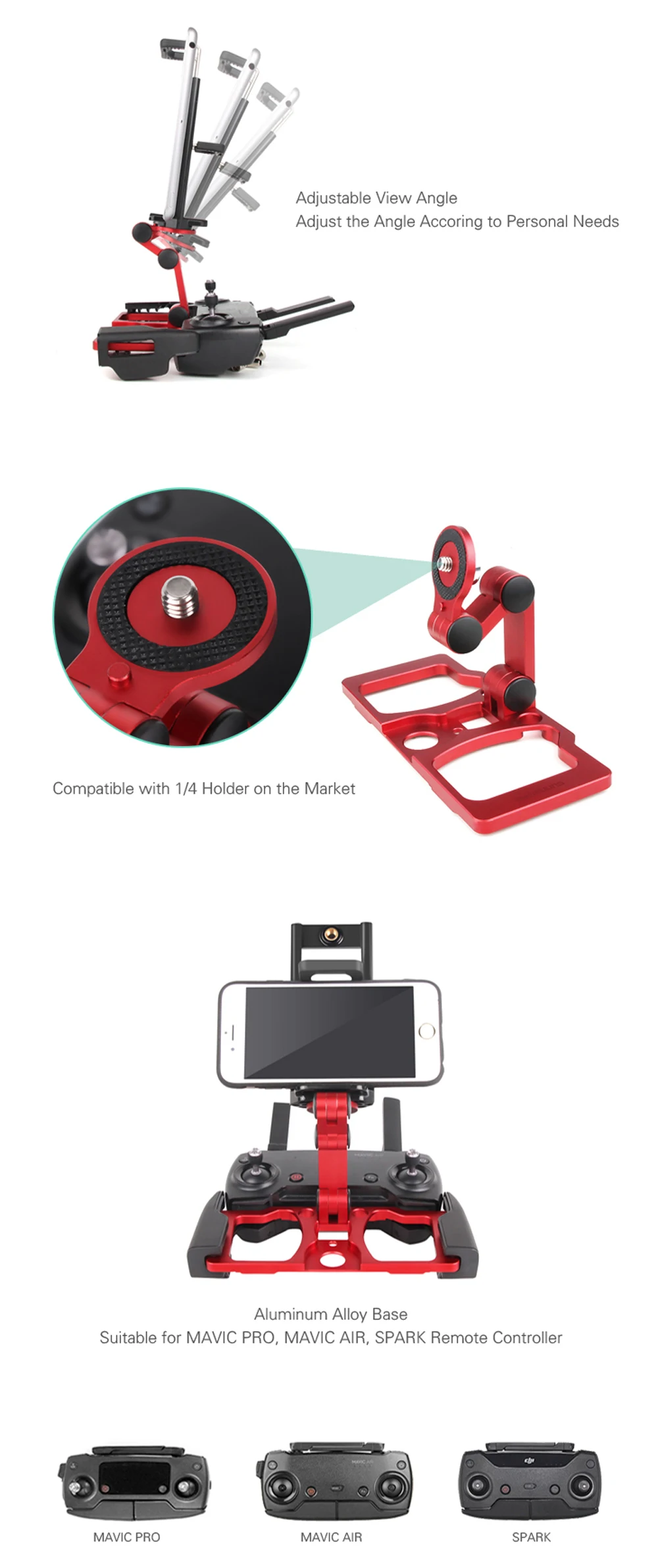 Описание Подходит для: пульта дистанционного управления MAVIC PRO/ MAVIC AIR/ SPARK Растягивающийся дизайн, подходит для смартфонов/планшетов из алюминиевого сплава с вырезами, уменьшает вес, легко удерживает и игровая сеть (основание из алюминиевого сплава): 130 г стойка для монитора CrystalSky является необязательной, вы можете купить ее или нет в соответствии с вашими потребностями. Посылка в комплекте 1 * комплект (не входит в комплект: пульт дистанционного управления и другие аксессуары)