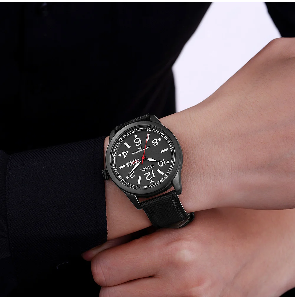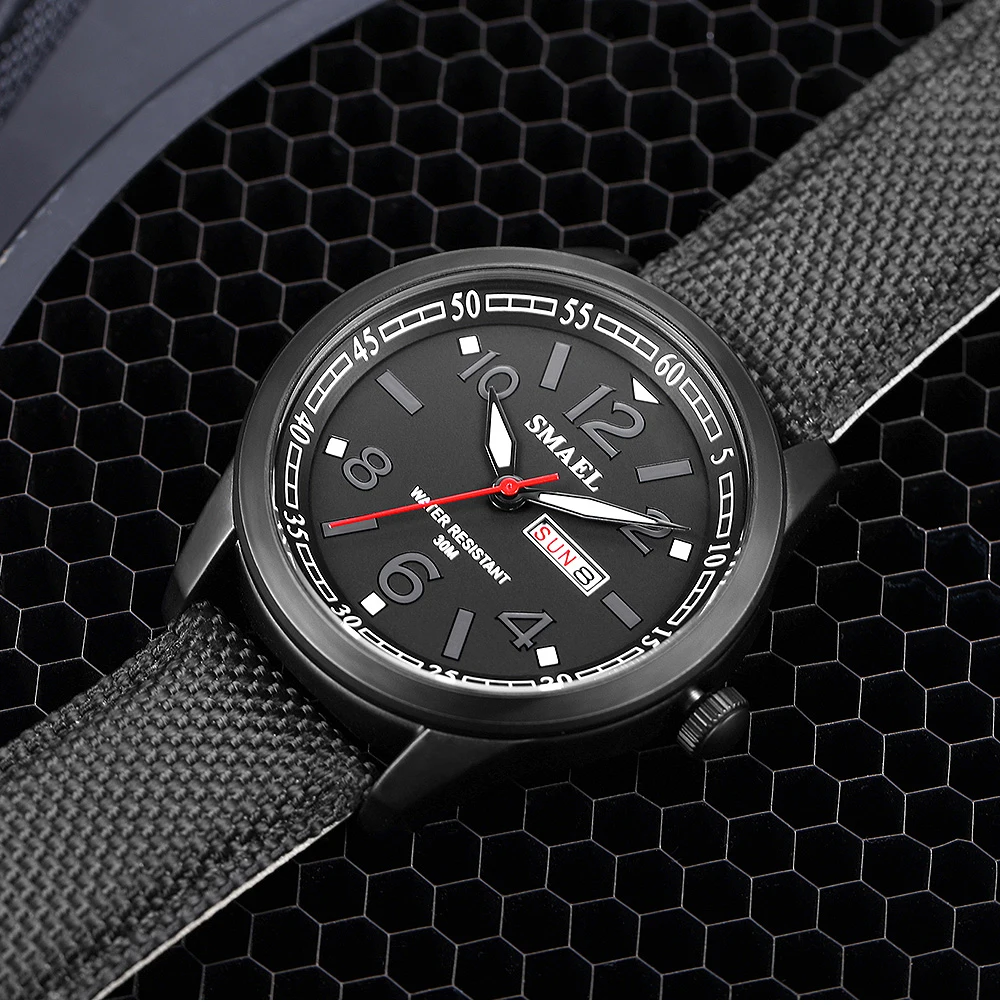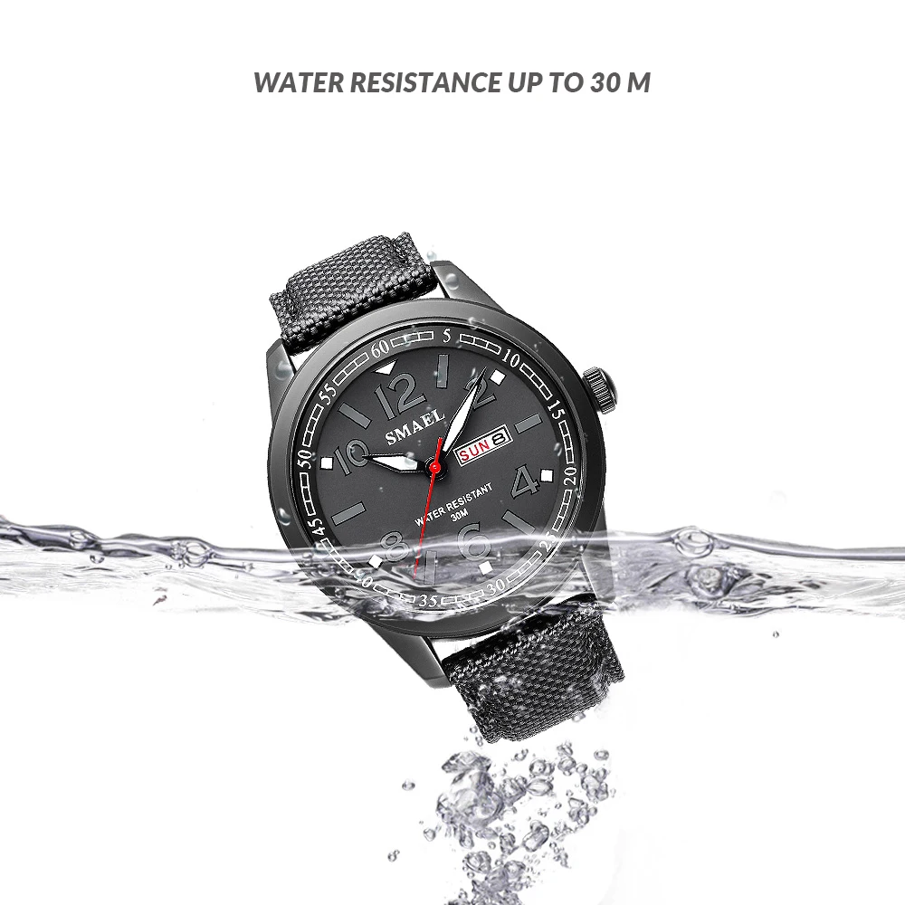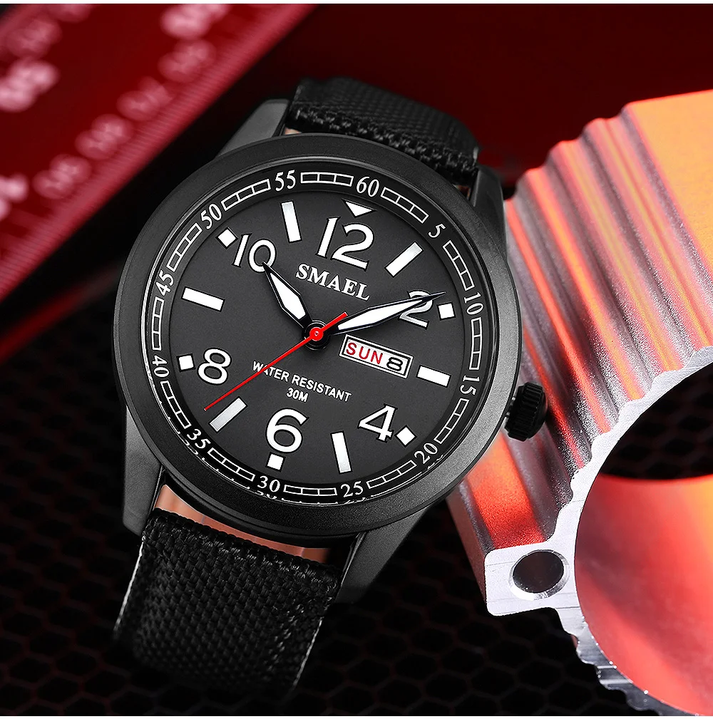 Эти мужские часы SMAEL Easy Reader с большим четко отмеченным циферблатом, дисплеем даты и недели. Наручные часы с нейлоновым ремешком и серебристой пряжкой. Линзы изготовлены из Hardlex. Благодаря функции быстрой даты и недели вы можете регулировать время, не поворачивая головку. Простой в использовании ночник обеспечивает удобное время чтения даже в темноте. Эти наручные часы также обеспечивают водонепроницаемость до 30 метров. Эти мужские часы станут отличным выбором для мужской повседневной одежды.