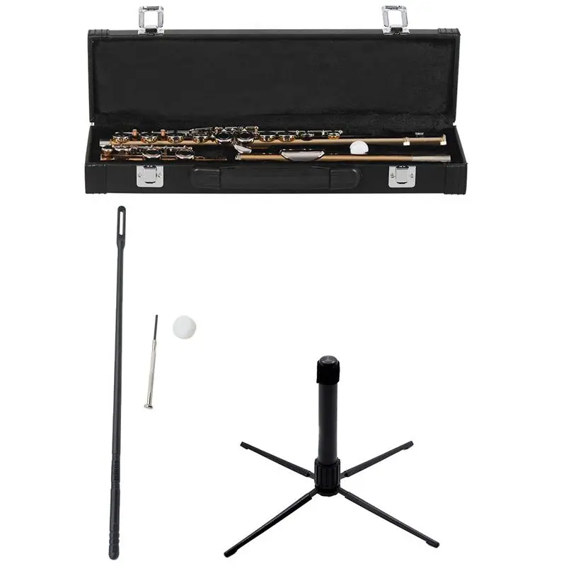 A plastic stick help and cleaning cloth keep flute dry and clean.