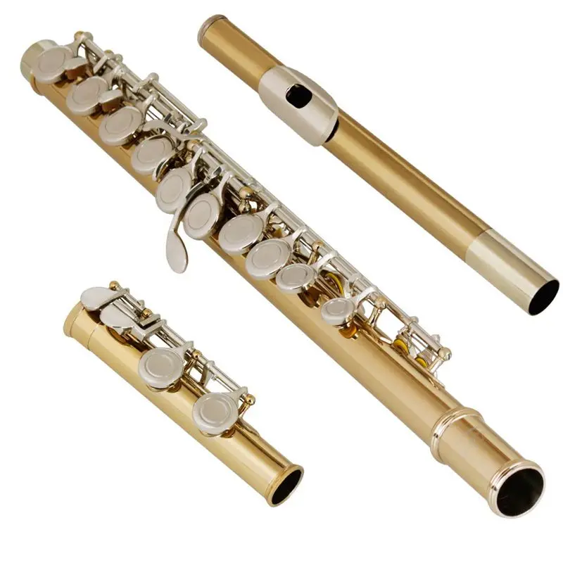 Made of brass, C key flute with 16 holes.