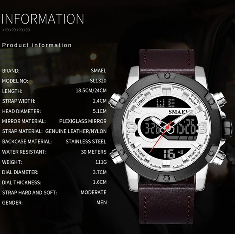 SMAEL часы мужские спортивные часы водонепроницаемые светодиодные цифровые кварцевые мужские военные наручные часы Мужские часы Relogio Masculino 1320