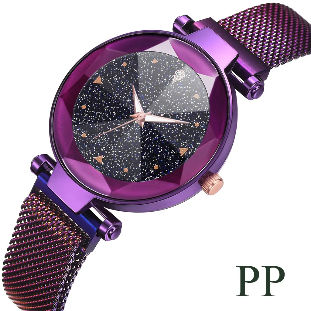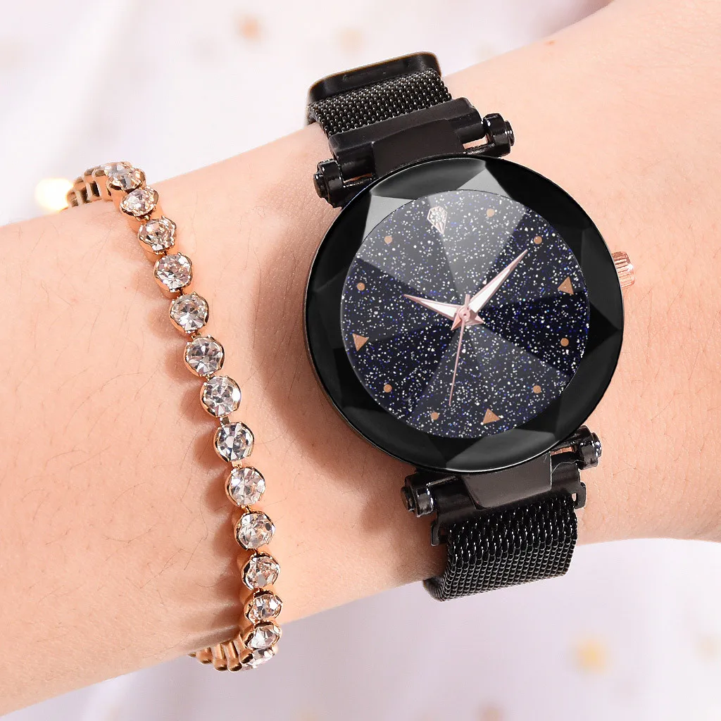 Модные звездное небо Выпуклое стекло кварцевая сетка с магнитной пряжкой женские часы платье часы украшение партии подарки
