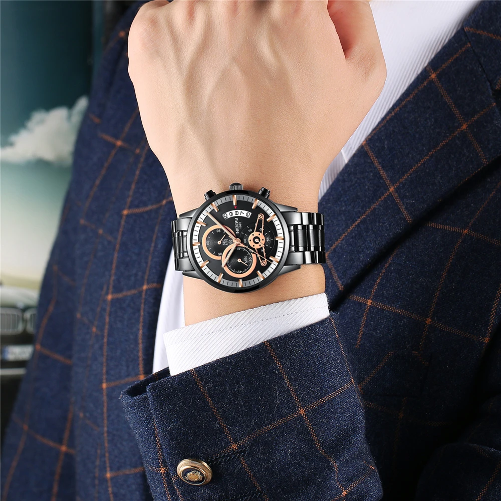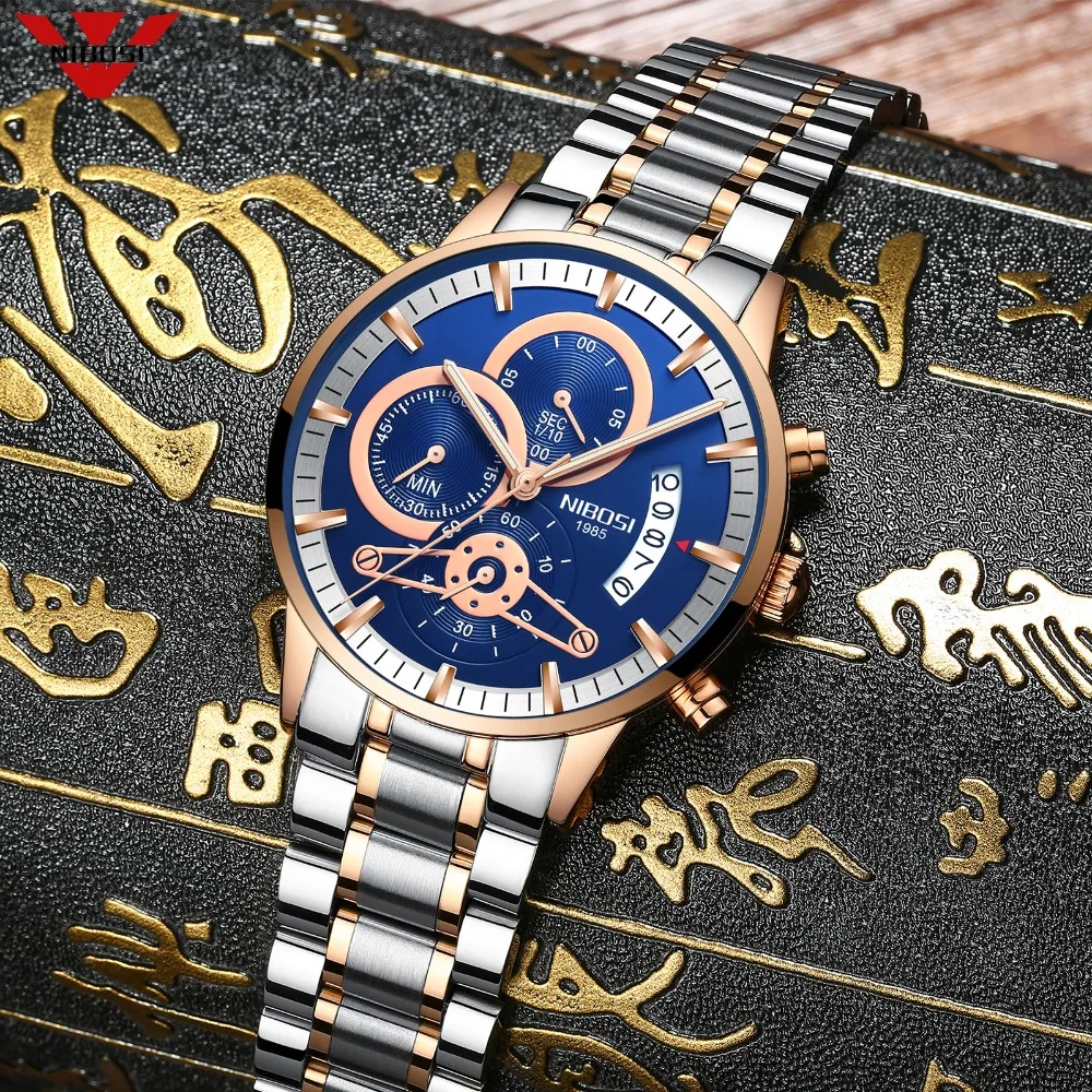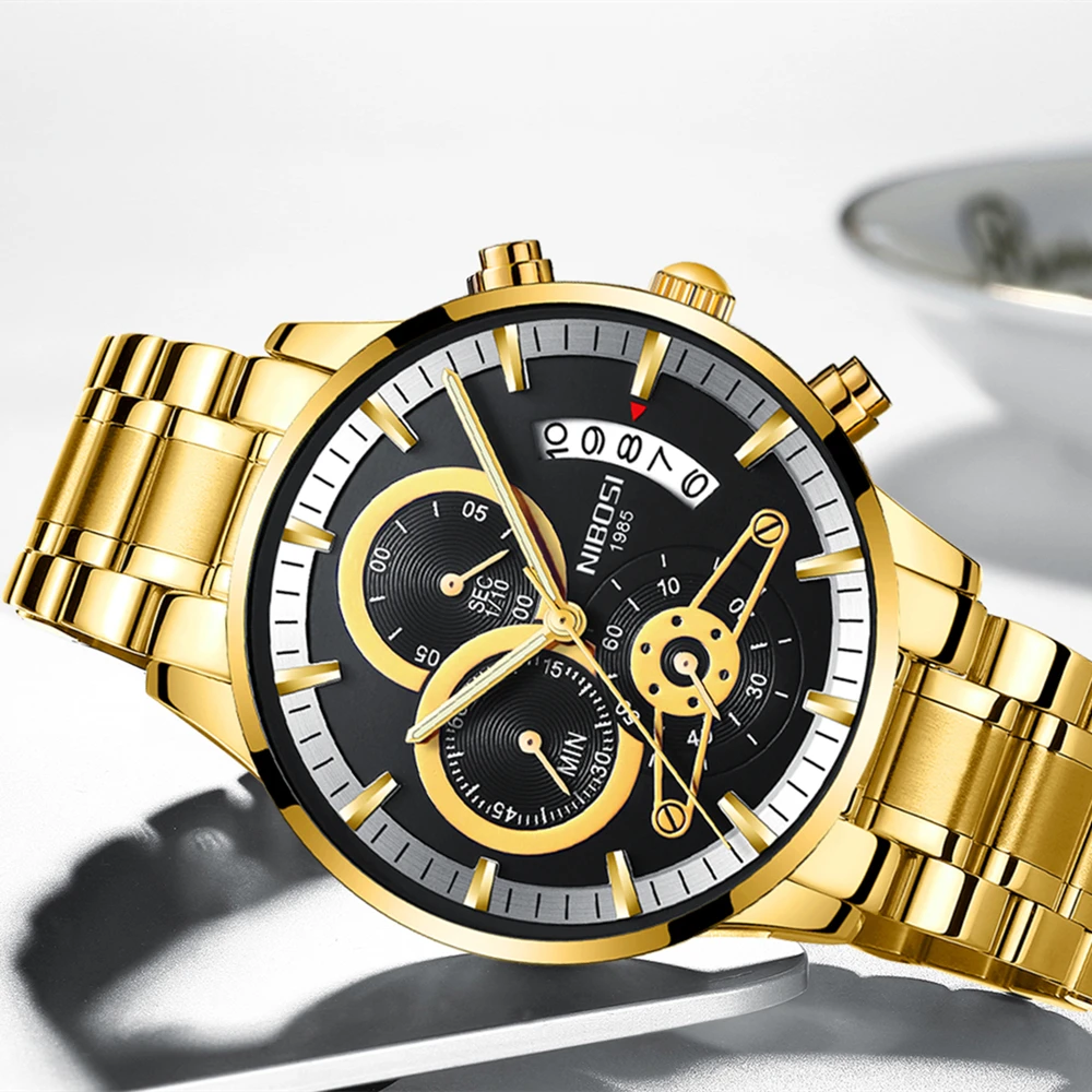 Relogio Masculino NIBOSI мужские часы золотые черные мужские часы Топ бренд класса люкс водонепроницаемые Авто Дата кварцевые наручные часы мужские Saat