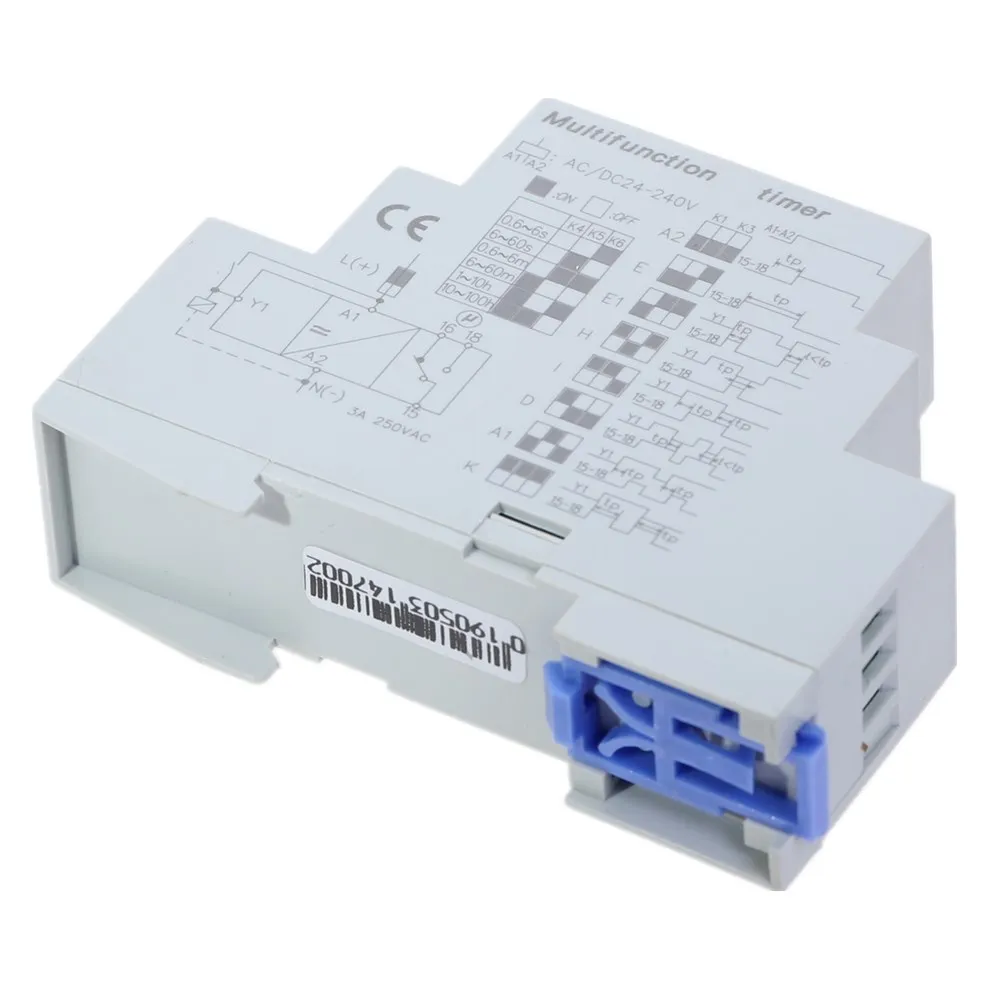 1. Напряжение питания: AC/DC 24-240V (50/60 Гц) 2. Длина импульса: мин. 25 мс/Макс. Неограниченное количество 3. Диапазон рабочего напряжения: Ue85 % ~ 110% 4. Время сброса: 150 мс 5. Потребление напряжения питания: AC макс: 0.6VA DC Макс: 0,6 W 6. Выход управления: 250 В переменного тока 10A (резистивный) 7. Диапазон времени: 0,6 s ~ 100h 10. Настройка времени: поворотный переключатель 11. Отклонение во времени: ± 5% Механическая Настройка 12. Вес: 80 г 13. Точность повторения: ± 0.5% установленная стабильность значений 14. Размеры: DIN-Размер 24 × 60 мм 15. Время включения: 0,6 S-100h 16. Время выключения: 0,6 S-100h 17. Крепление: din-рейка 18. Температура окружающей среды: Рабочая:-10 ° Cto55 °C