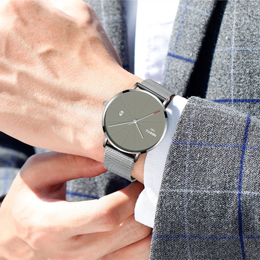 Relogio Masculino NIBOSI простые мужские часы Топ бренд класса люкс Мужские кварцевые тонкие сетчатые стальные водонепроницаемые спортивные мужские часы Saat