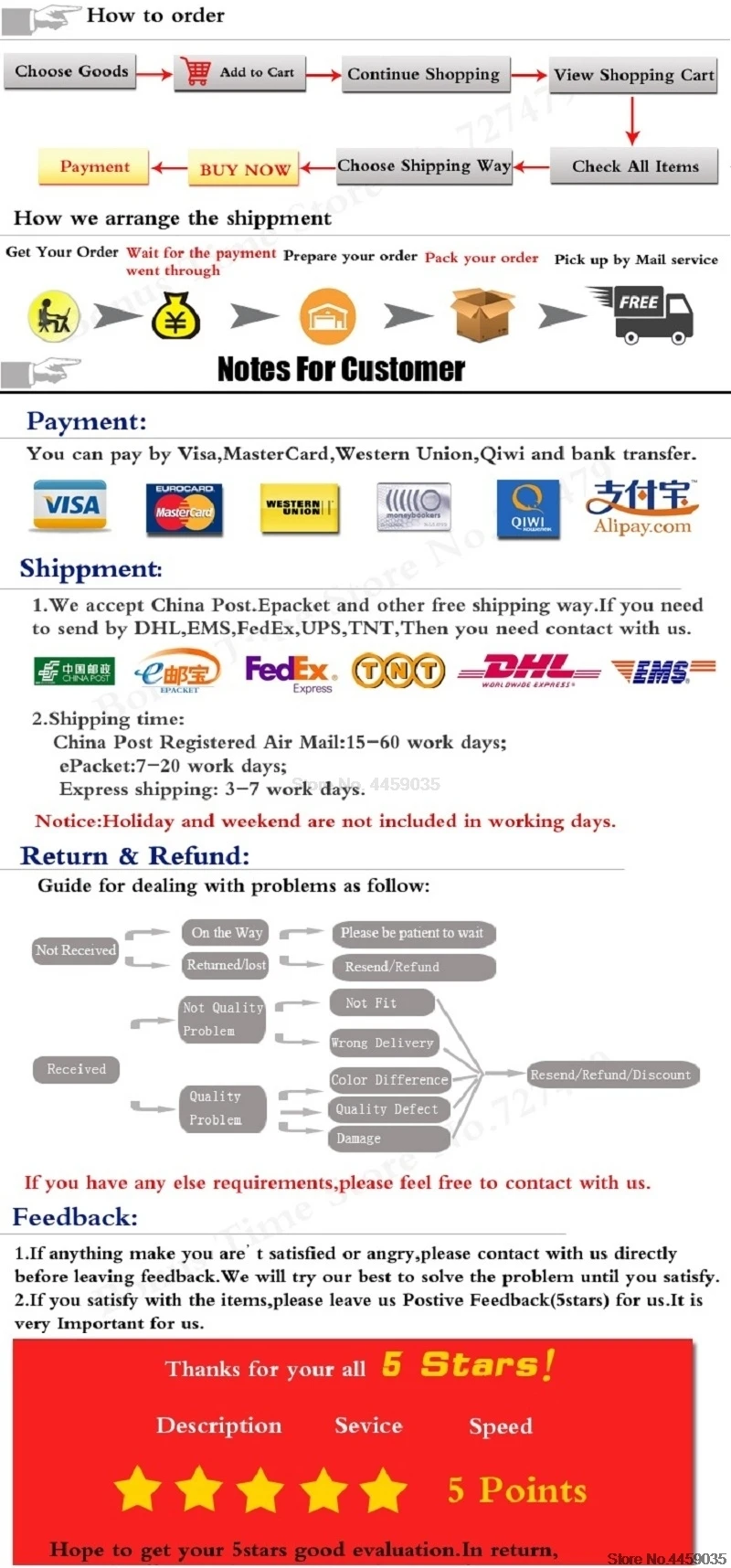Для дропшиппинг, вы можете отправить заказ по адресу вашего клиента, мы можем отправить посылку без какой-либо информации о нашем магазине.