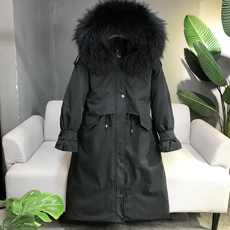 Женская длинная парка на утином пуху с воротником из натурального меха енота, свободное теплое пальто с капюшоном, зима 2019