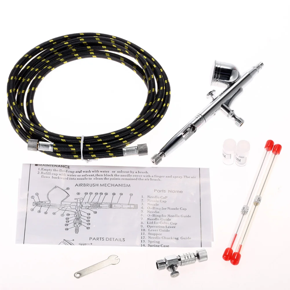 Включает в себя Бесплатная 5.9ft шланг для подачи воздуха и 0,2, 0,3, 0,5 мм иглы и насадки.