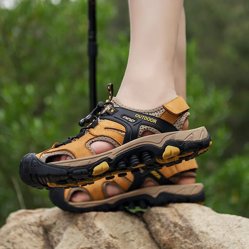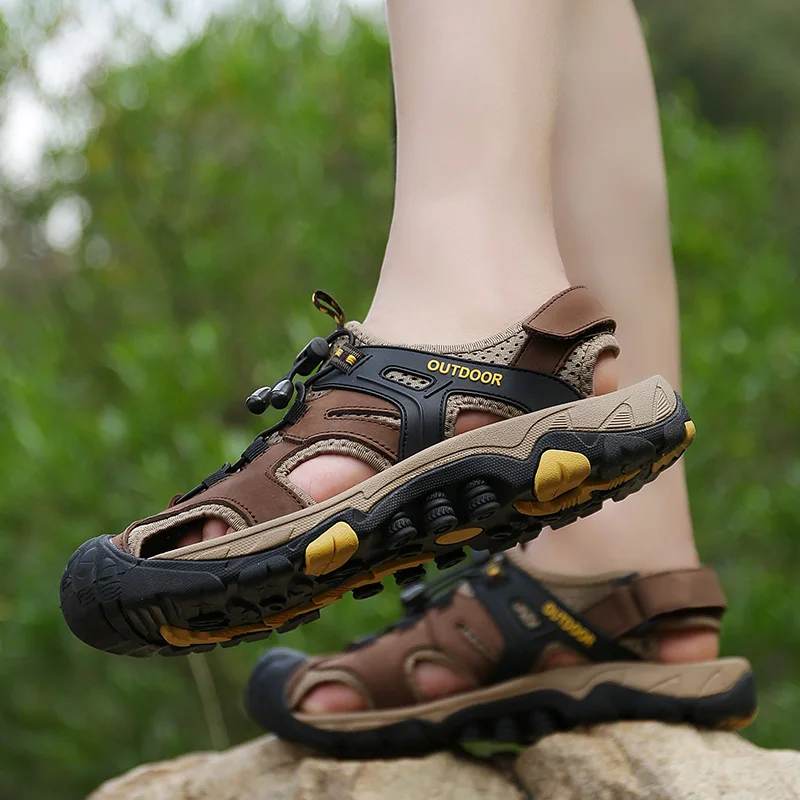 Осенние мужские уличные походные сандалии из дышащей воловьей кожи; Прогулочная обувь с закрытым носком в рыбацком стиле; Быстросохнущая Нескользящая мужская пляжная обувь