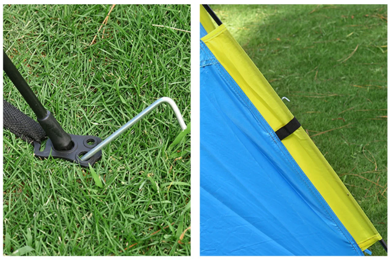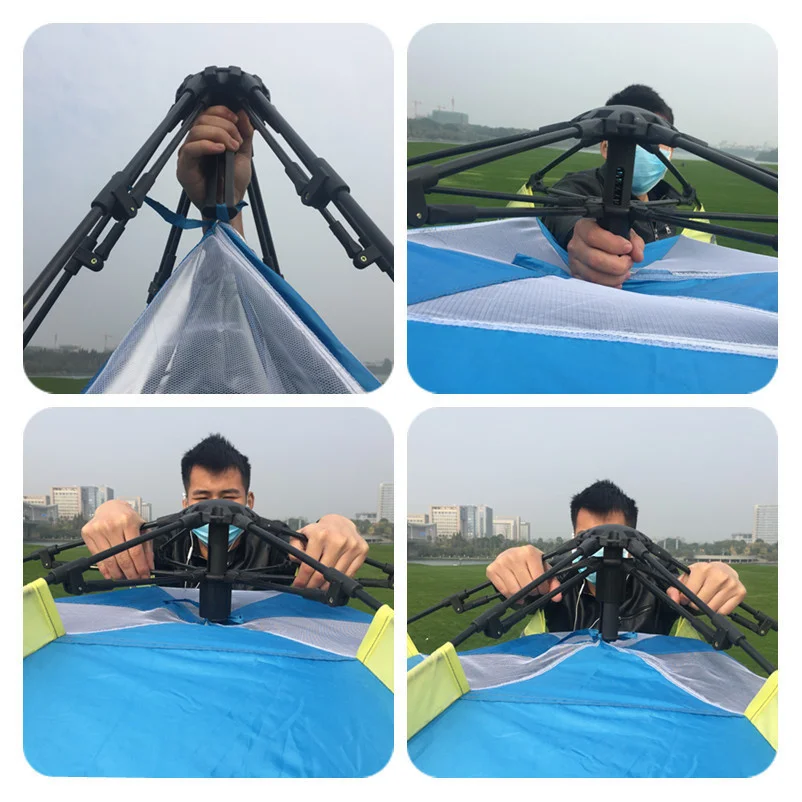 Внешняя палатка: 180T уплотненная полиэфирная ткань водонепроницаемый материал одежды.Пространство палатки: 240*240*145 см, шестигранное пространство.
