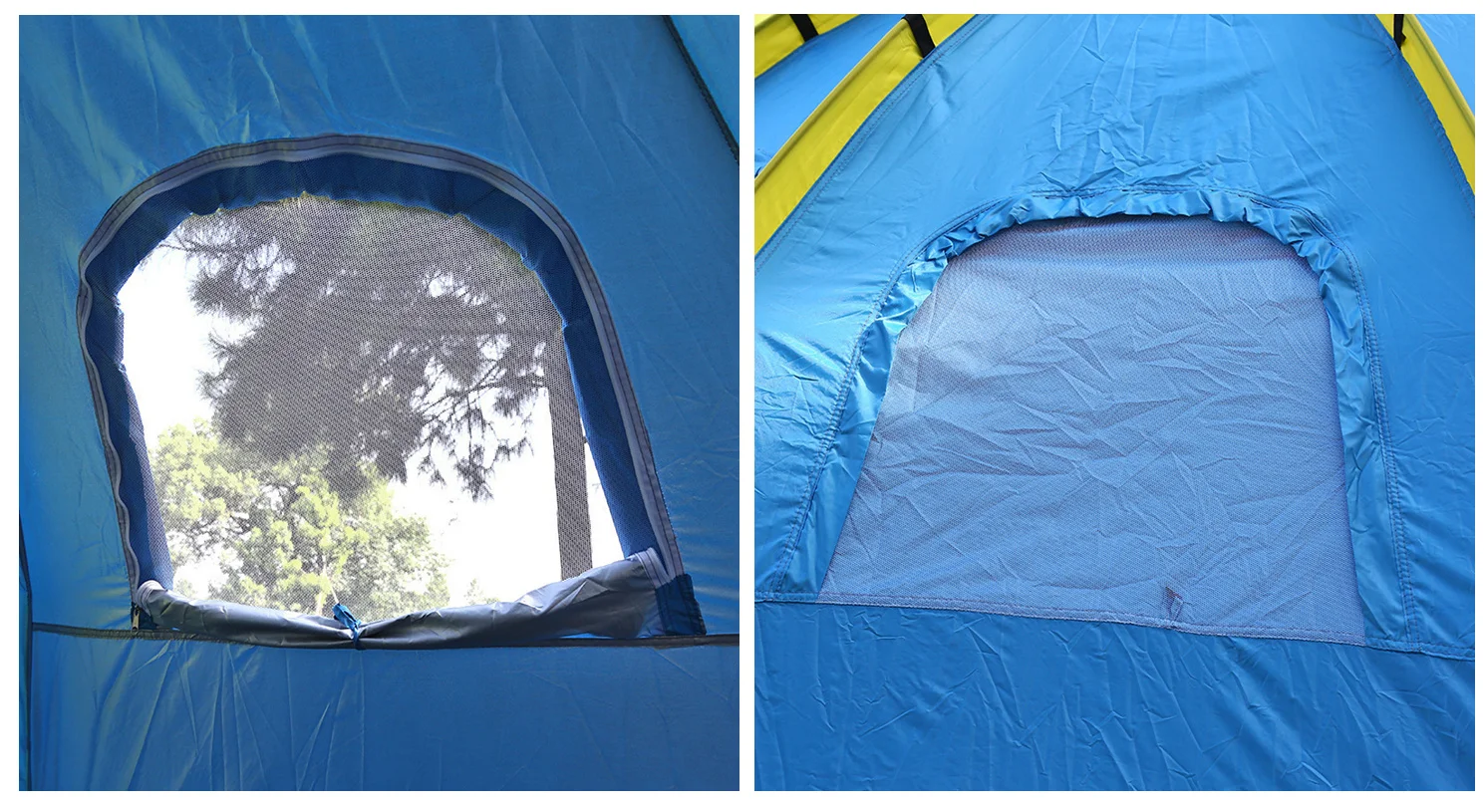 Крючки для лампы на верхней части палатки с 4 двухслойными вентиляционными окнами